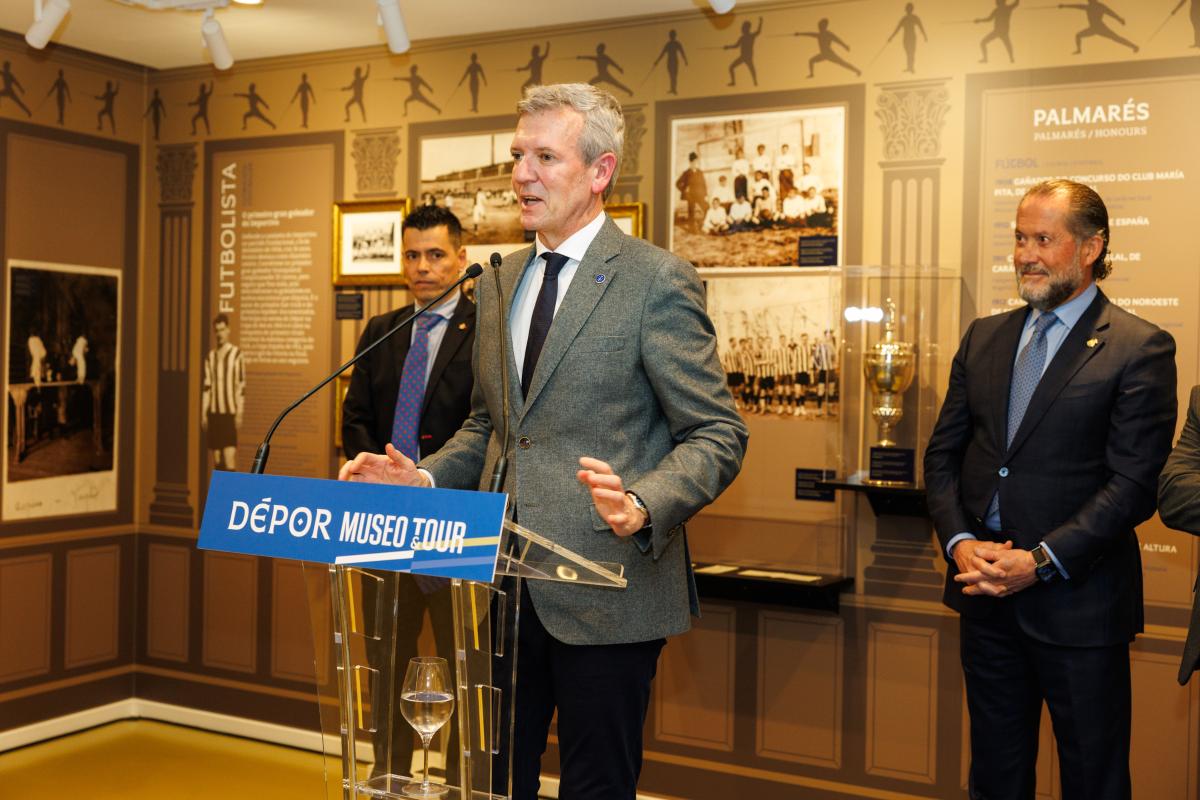 O presidente da Xunta, Alfonso Rueda, participou hoxe na inauguración do museo do Real Club Deportivo, cuxo obxectivo é facer un percorrido polos 120 anos de historia do equipo coruñés a través de 2.000 obxectos de distinta natureza como trofeos, equipacións, xornais ou material audiovisual.