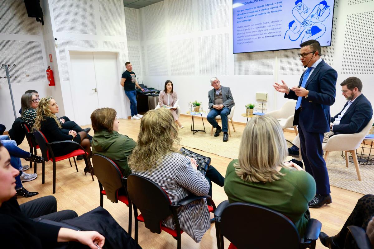 Para potenciar o talento interno, subliñou o redeseño integral das políticas activas de emprego, vinculando o investimento público en formación para o emprego coas necesidades reais das empresas e as vacantes do territorio