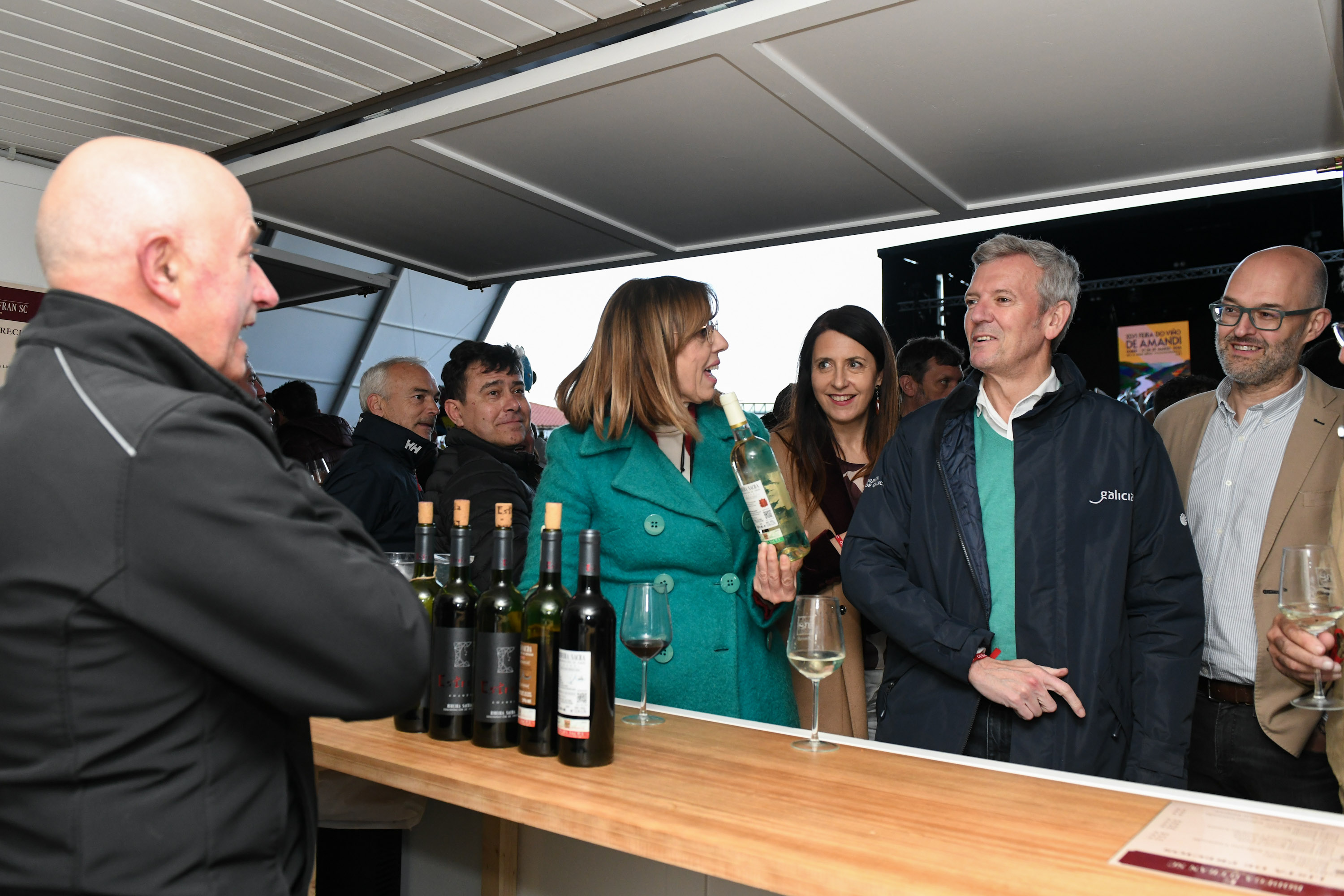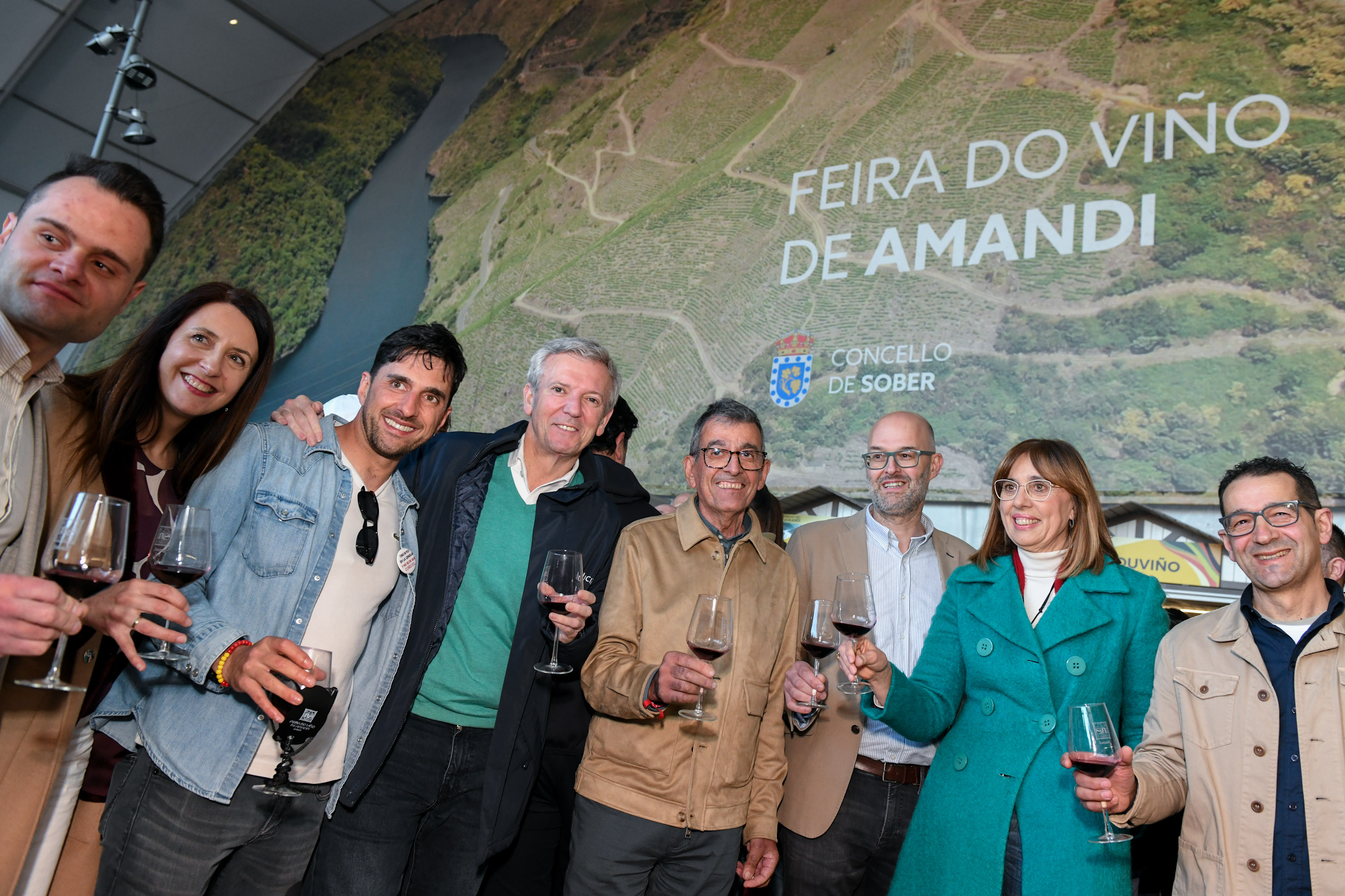 El presidente de la Xunta de Galicia, Alfonso Rueda, acompañado de la conselleira do Medio Rural, María José Gómez, visitó esta tarde las casetas de la Feira do Viño de Amandi, en Sober. Una cita consolidada y de referencia para poner en valor los vinos de esta subzona de la Denominación de Orixe Ribeira Sacra, que el año pasado alcanzó una producción de más de 4,6 millones de kilos de uva, con un valor estimado superior a los 20,8 M€.