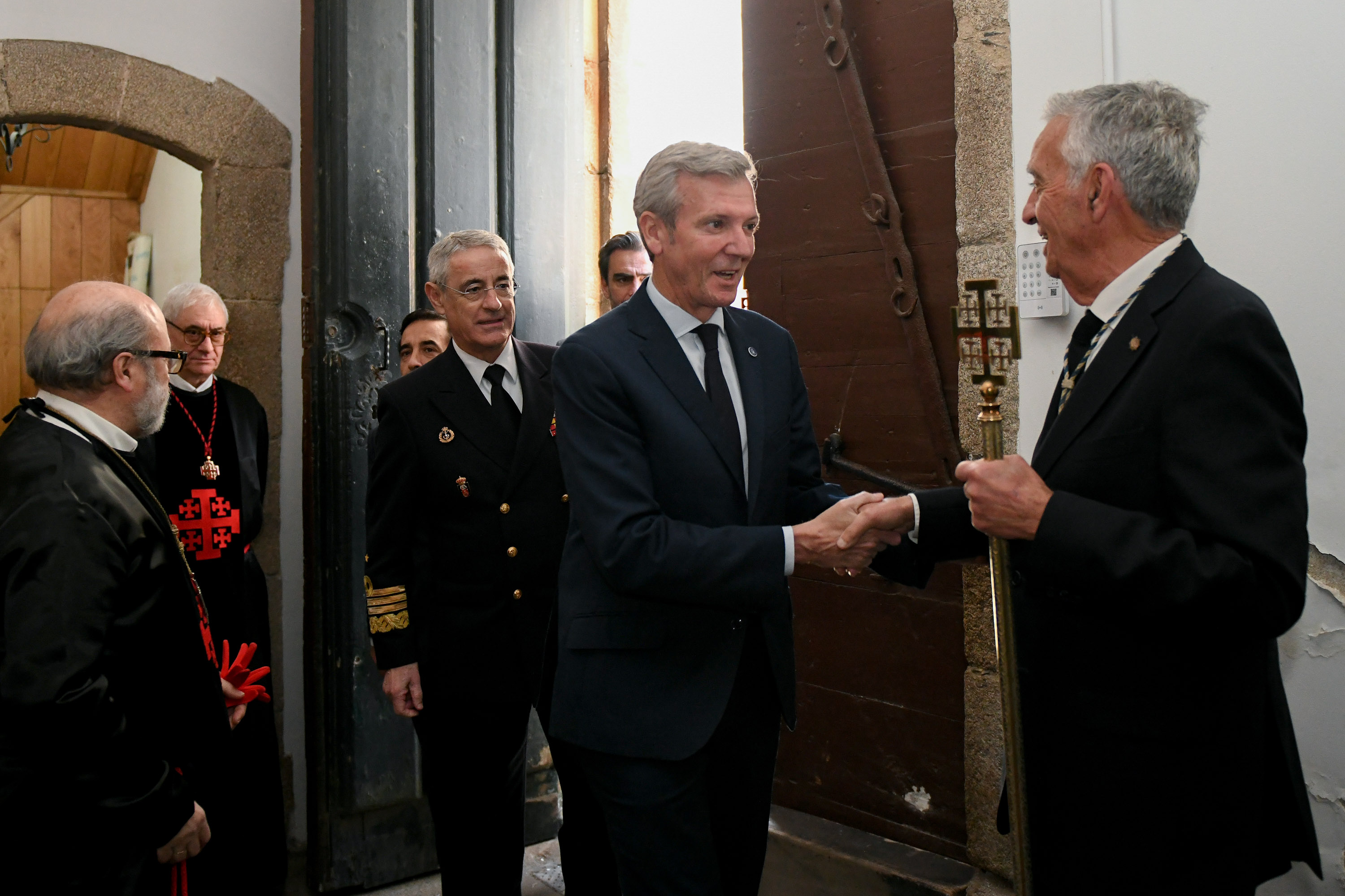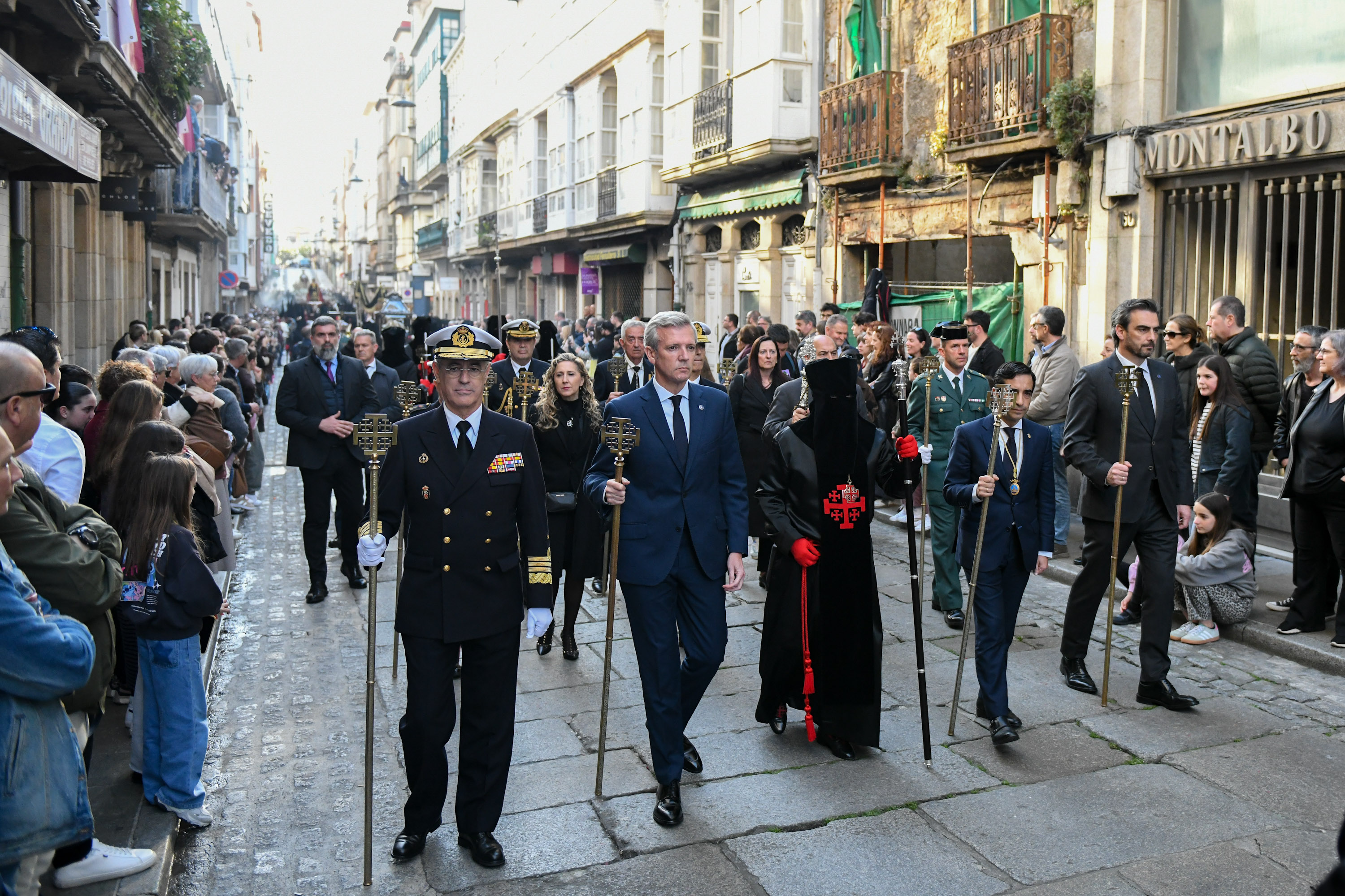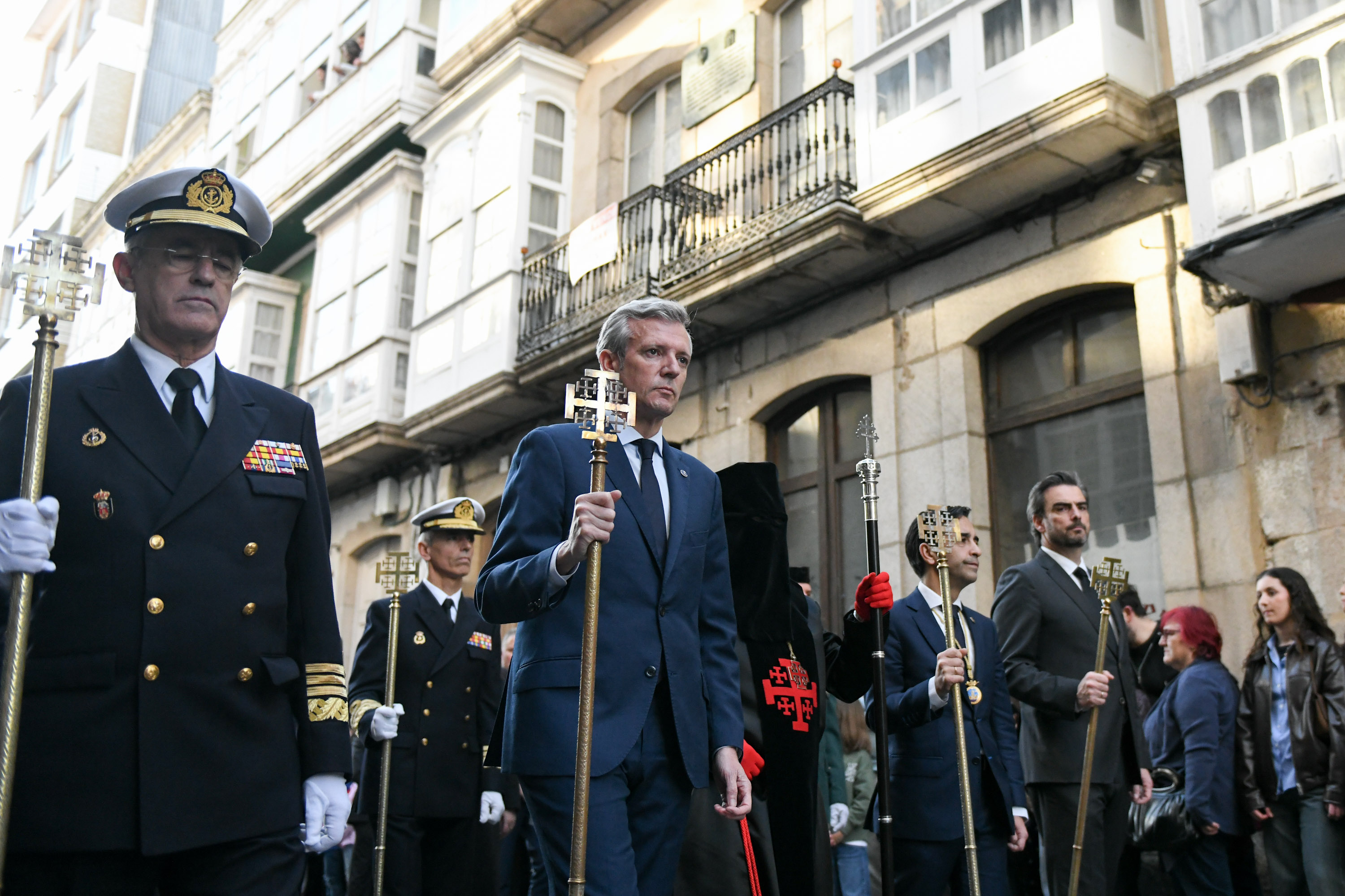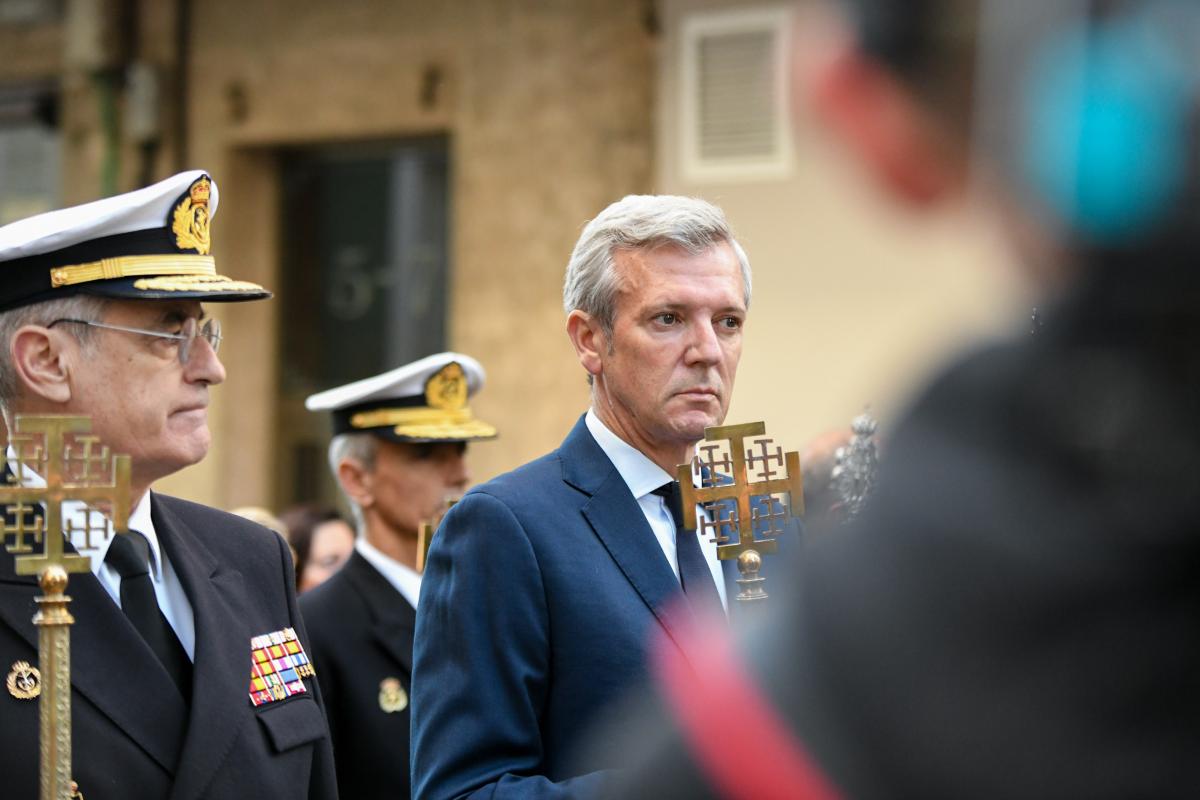 O presidente da Xunta, Alfonso Rueda, acompañado polo conselleiro de Presidencia, Xustiza e Deportes, Diego Calvo, participou na procesión do Santo Enterro.