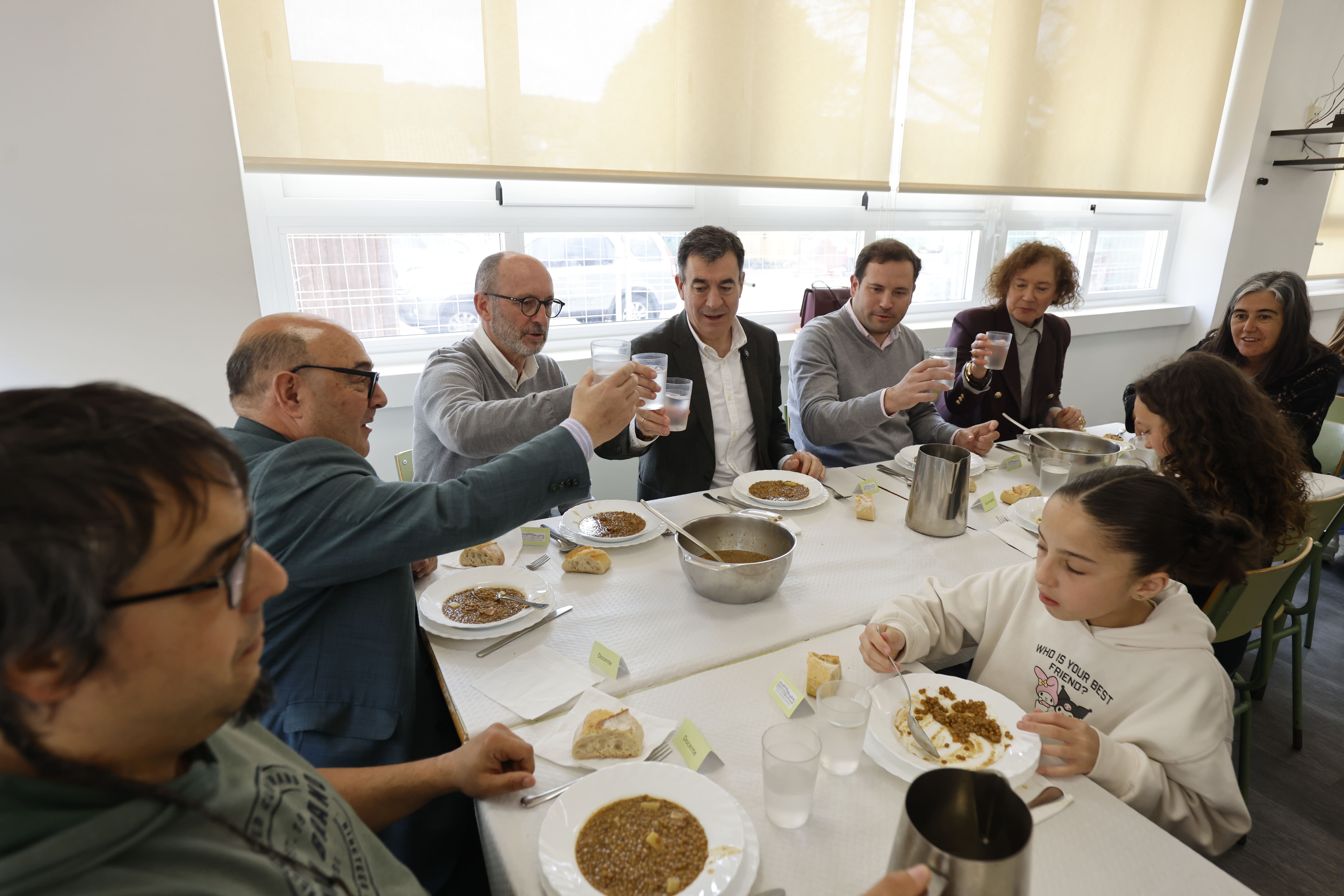El conselleiro de Educación almuerza en el Colexio Plurilingüe de Tenorio, en Cerdedo Cotobade, que reabre tras sufrir un incendio el pasado mes de febrero