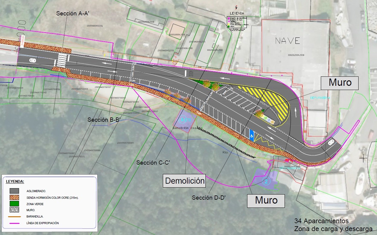Ademais, executarase unha senda peonil para facilitar aos peóns o acceso aos seus vehículos aparcados.