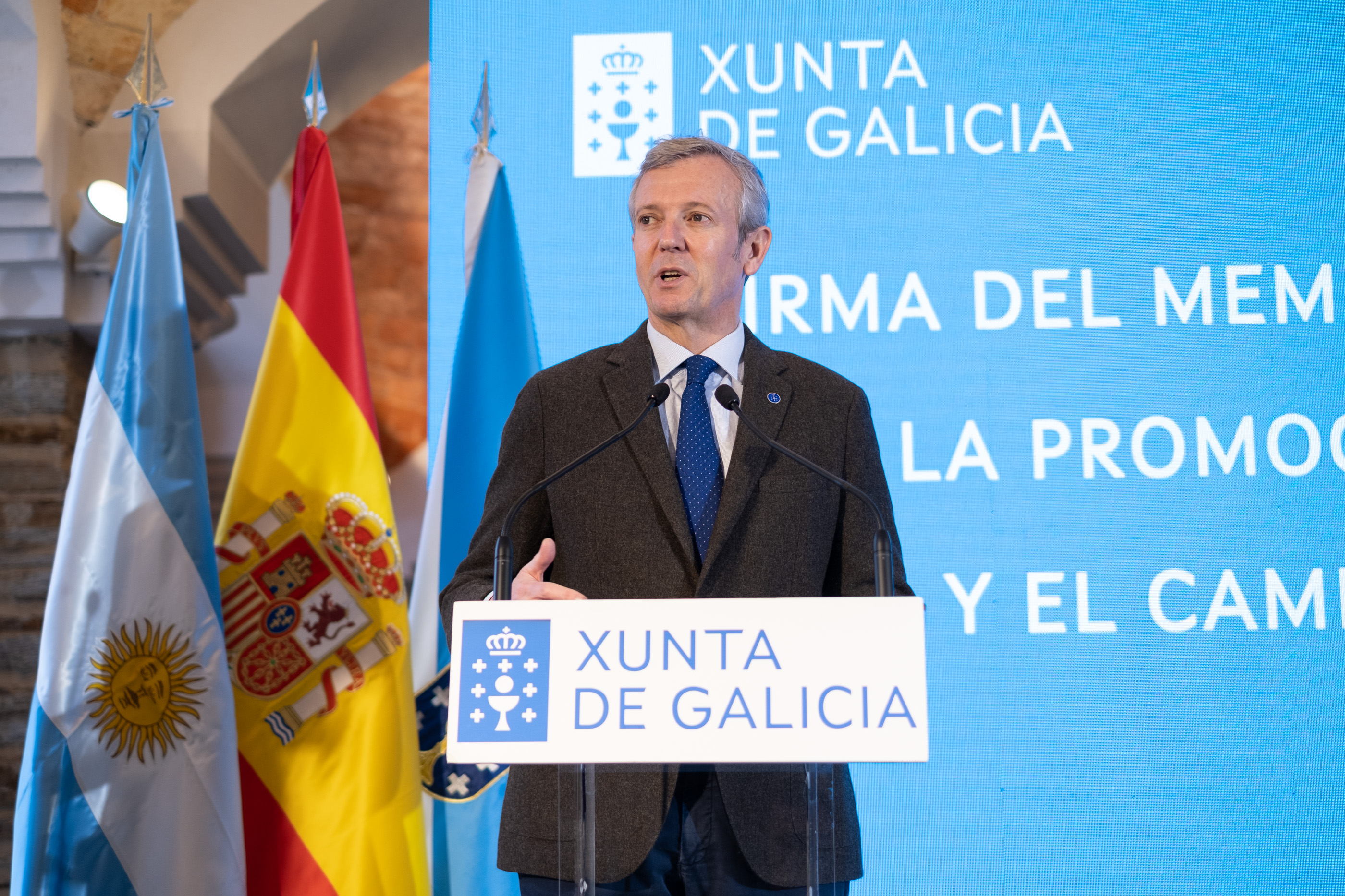 O presidente da Xunta, Alfonso Rueda, e o gobernador da provincia arxentina de Córdoba, Juan Schiaretti, asinaron hoxe un Memorandum de Entendemento polo que ambas rexións establecen unha relación de irmandade na que se comprometen a colaborar na promoción e difusión das dúas rutas de peregrinación que percorren os seus territorios: o Camiño de Santiago e o Camino del Cura Brochero.