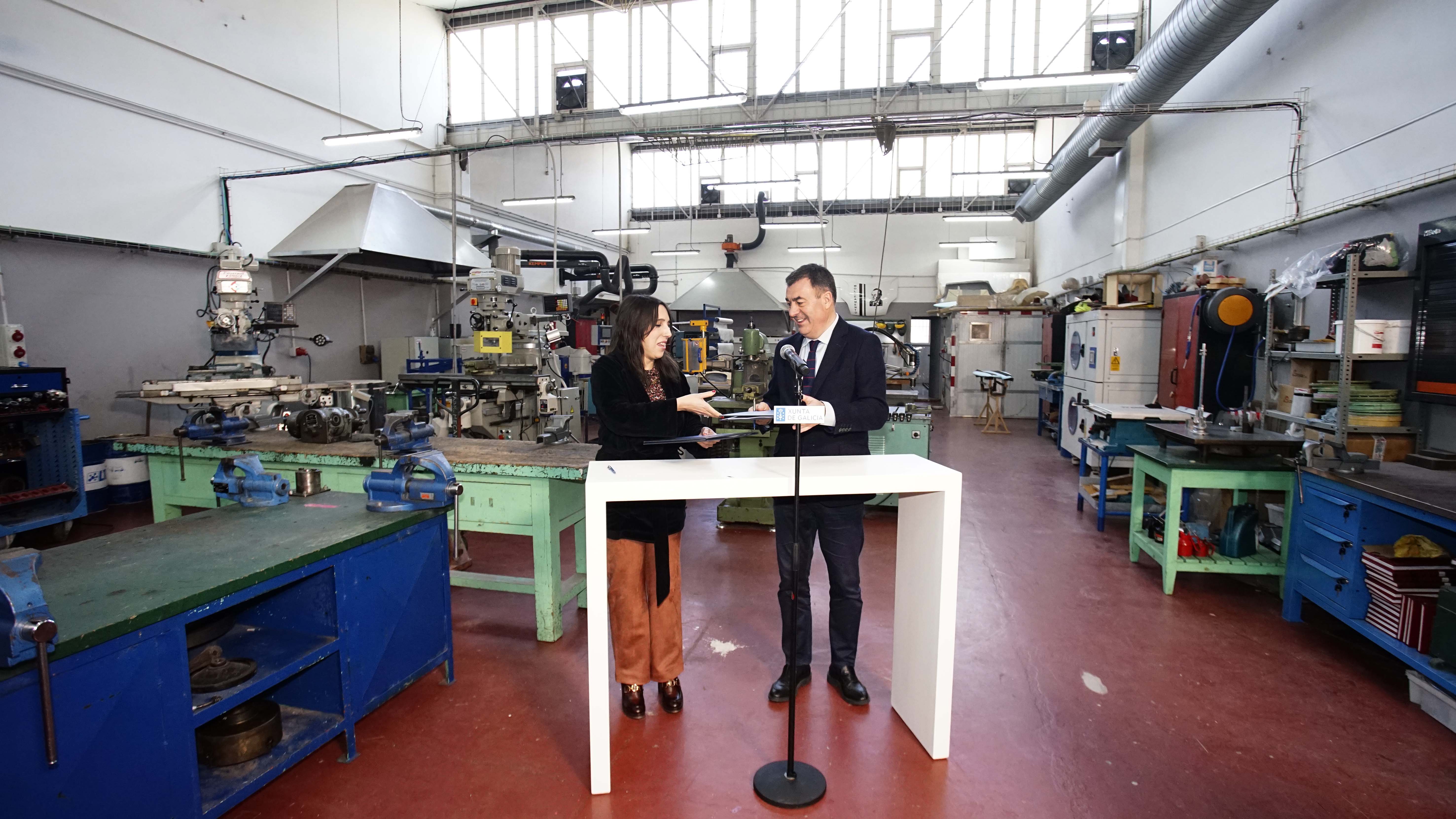 Os conselleiros de Cultura, Educación, FP e Universidades, Román Rodríguez, e de Promoción do Emprego e Igualdade, María Jesús Lorenzana, asinaron hoxe no Centro Integrado de FP Valentín Paz Andrade de Vigo un acordo para a coordinación das accións formativas para persoas desempregadas que se imparten en centros de FP. Unha oferta que este ano chegará a 133 cursos e que desde 2020 se ten incrementado en case o 50%. Grazas á súa impartición en centros da Consellería de Educación, chegará a 44 concellos de todo o territorio, tanto en zonas urbanas como rurais. O investimento total ascende a 5,3 M€, un impulso “sen precedentes” para esta cualificación que conta con 800.000 euros máis que na anterior edición.