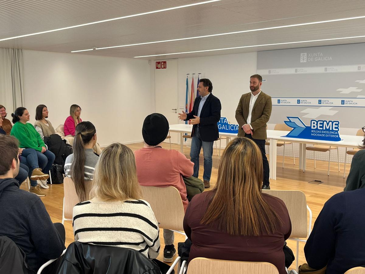 En el encuentro estuvieron también presentes a subdirectora de Retorno de la Secretaría Xeral da Emigración, Begoña Solís, así como responsables de la Oficina Integral de Asesoramiento y Seguimiento al Retorno de A Coruña, que resolvieron las dudas y necesidades que expusieron los becarios.