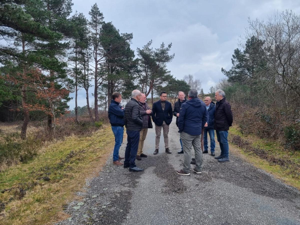 El conselleiro do Medio Rural, José González, supervisó el estado de un camino que comunica con la pista de aterrizaje de los aviones de carga en tierra de Beariz, para la lucha contra los incendios forestales. En la visita analizó las posibilidades de mejorar esta infraestructura acompañado por los alcaldes de A Lama, Jorge Canda; de Avión, Antonio Montero, y del propio Ayuntamiento de Beariz, Manuel Prado.