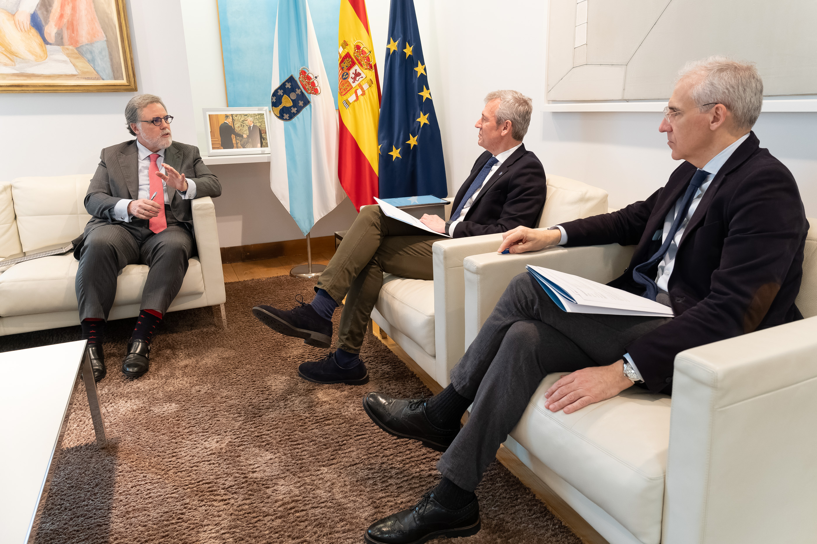 O presidente da Xunta, Alfonso Rueda, analizou hoxe co novo presidente de Alcoa en España, Miguel Ángel López Quesada-Gil, os proxectos e os prazos que manexa a compañía para a reactivación dunha industria fundamental para a economía galega como é a fábrica de aluminio de San Cibrao. O mandatario galego recibiuno no seu despacho en San Caetano, nun encontro no que tamén estivo presente o vicepresidente primeiro e conselleiro de Economía, Industria e Innovación, Francisco Conde.
