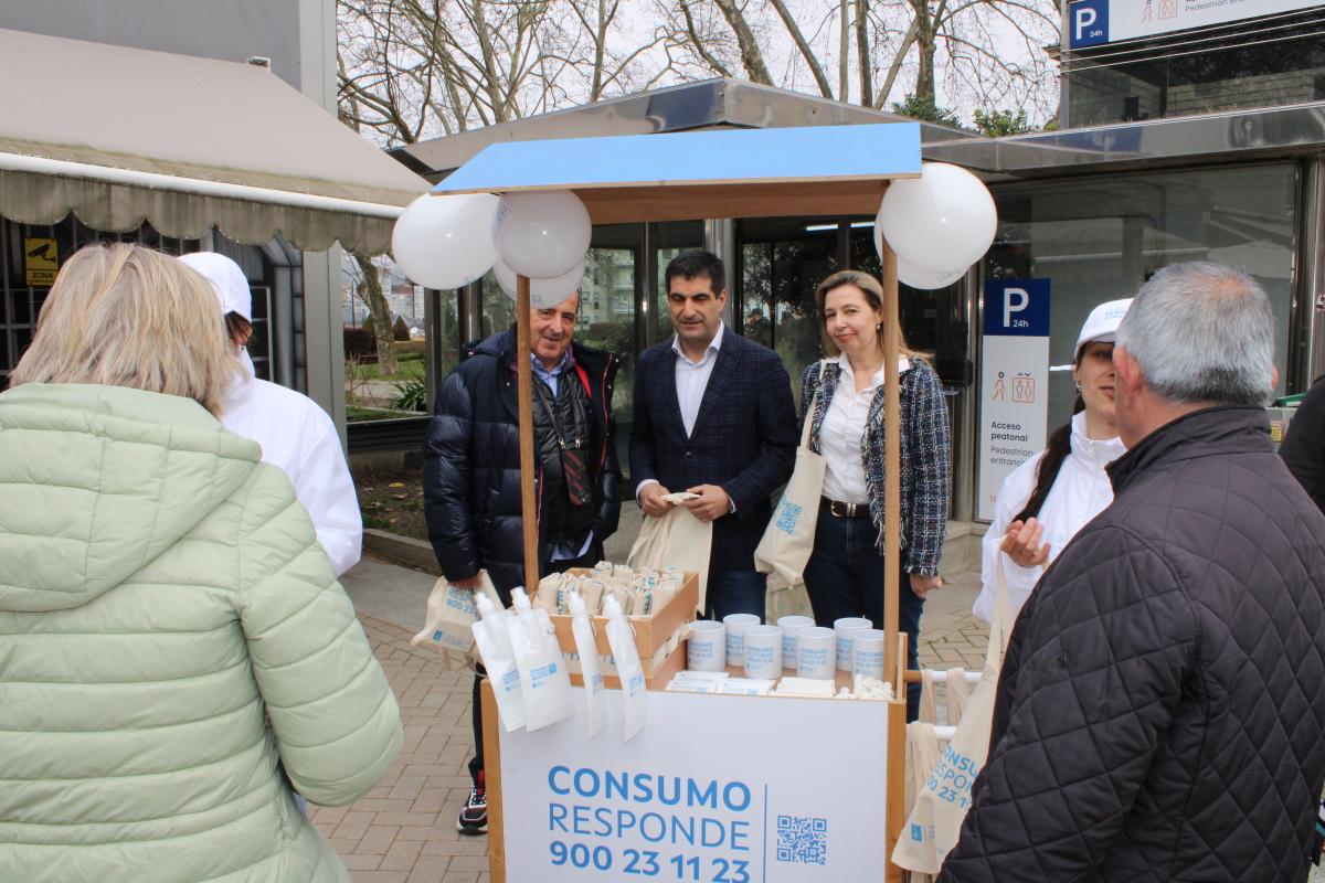 El delegado territorial de la Xunta visita el punto informativo situado en la Plaza de Abastos de Ourense con motivo del Día Mundial de los Derechos de las Personas Consumidoras