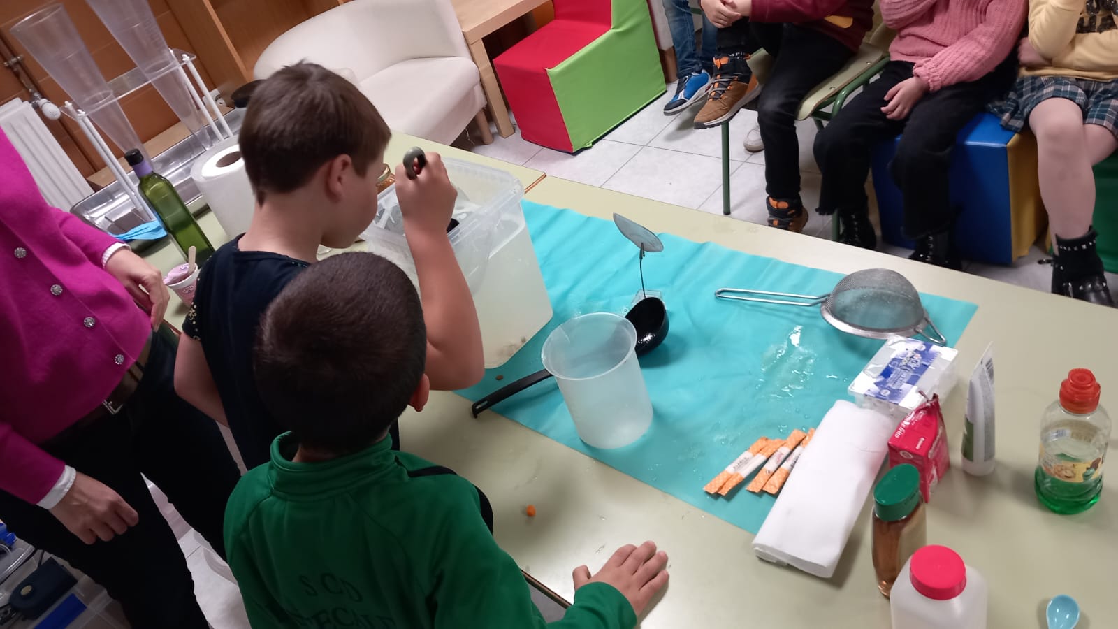 Ademais, os rapaces participaron nunha práctica de descontaminación da auga, que consistiu na creación de auga residual nuns recipientes e no simulado posterior dos elementos dunha planta real: filtración, rascado superficial, decantación, aspiración, axitación e aireación.