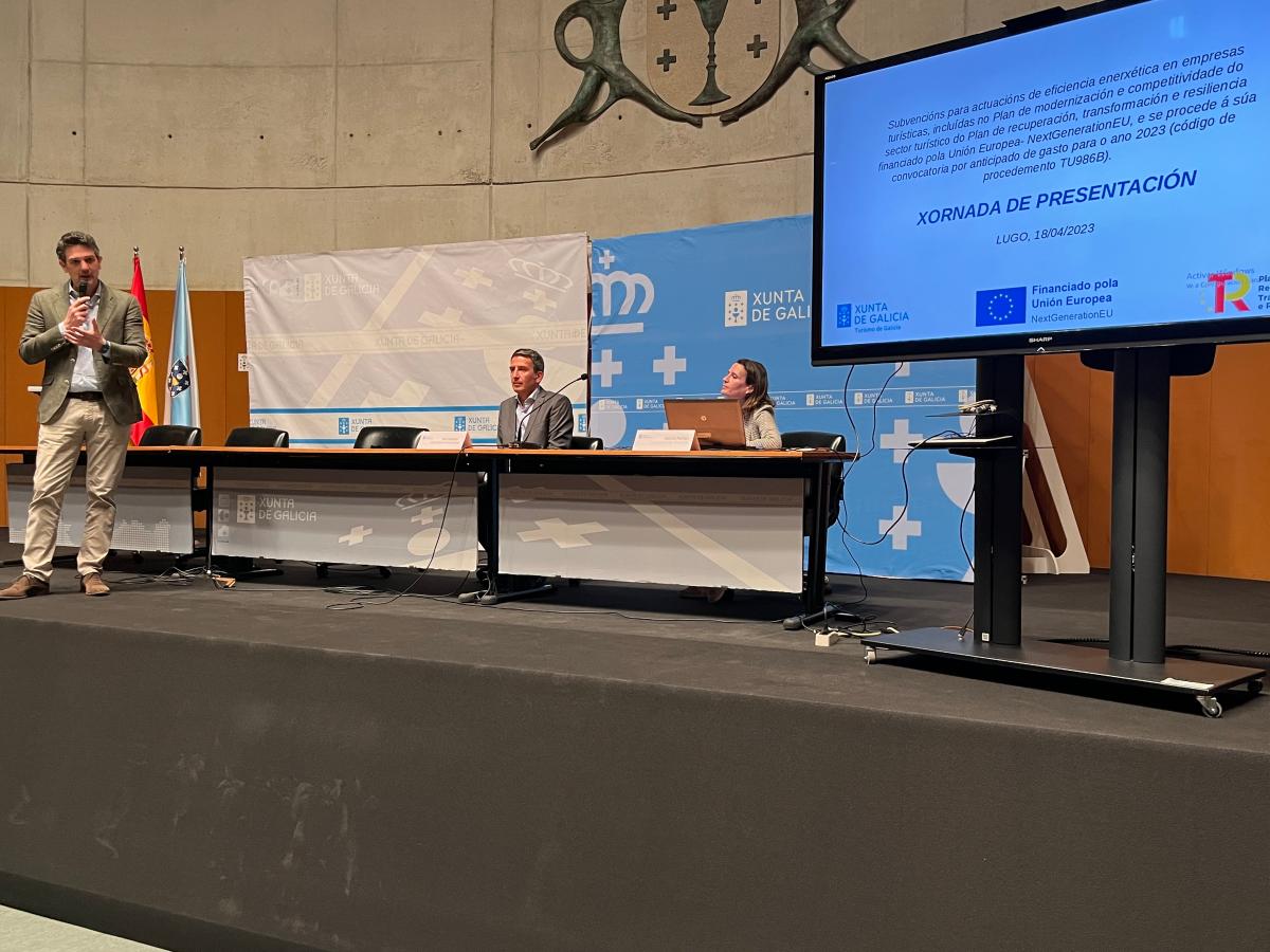 La Xunta organizó hoy en Lugo una jornada informativa sobre las ayudas para mejorar la eficiencia energética en establecimientos turísticos, dirigida a profesionales del sector. El delegado territorial del Gobierno gallego, Javier Arias, participó en la sesión, que contó con el apoyo técnico del Clúster das Enerxías Renovables para explicar los detalles de la convocatoria, dotada con 7,8 millones de euros.