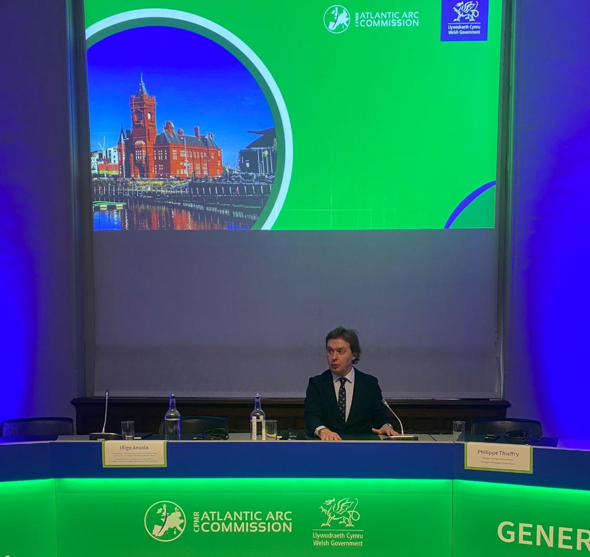 Cardiff (Gales), 23 de mayo de 2023 La Xunta de Galicia, representada por el director xeral de Relacións Exteriores e coa UE, Jesús Gamallo, participó en la asamblea general de la Comisión del Arco Atlántico de la Conferencia de Regiones Periféricas y Marítimas (CRPM). El encuentro, celebrado en Cardiff, sirvió de impulso para la propuesta de creación de una macrorregión atlántica, invitando al Gobierno de España a tenerla como prioridad en su presidencia del Consejo de la UE. De salir adelante, sería la quinta macrorregión en constituirse y permitiría una cooperación más estructurada entre las regiones miembro, más allá de la actual estrategia marítima atlántica.