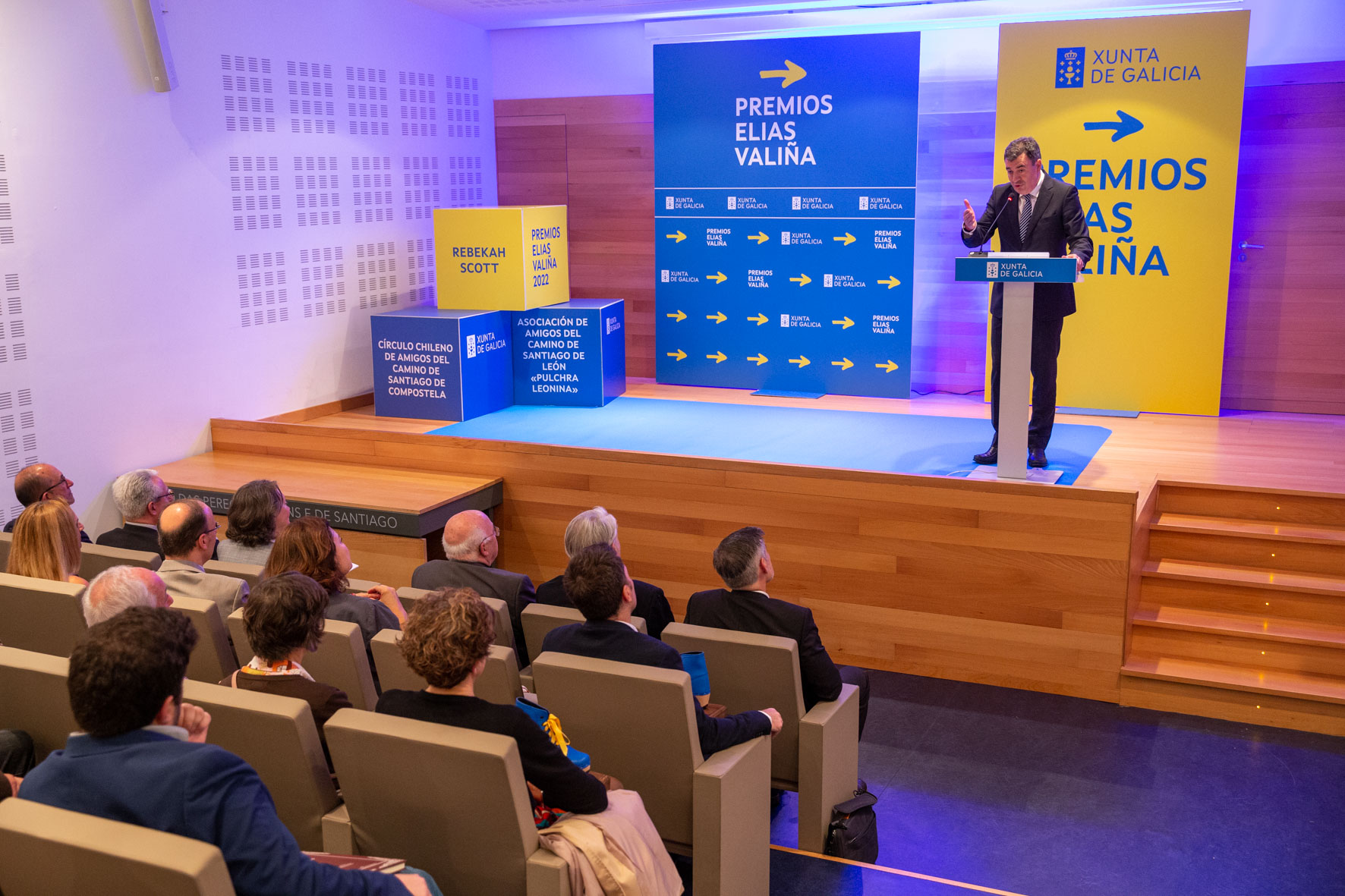 El conselleiro de Cultura, Educación, FP e Universidades, Román Rodríguez, agradeció hoy a las distintas asociaciones de amigos del Camino de Santiago su labor por mantener vivo “el rico patrimonio cultural, histórico y espiritual” de la Ruta Xacobea. Así lo manifestó durante el acto de entrega de los XXIII Premios Elías Valiña, el reconocimiento con el que la Xunta galardona el esfuerzo revitalizador del Camino de Santiago por estas entidades sin ánimo de lucro y que este año recayó en la asociación Pulchra Leonina y en el Círculo Chileno. Por su parte, Rebekah Scott, figura destacada entre los peregrinos de habla inglesa, recibió una mención especial.