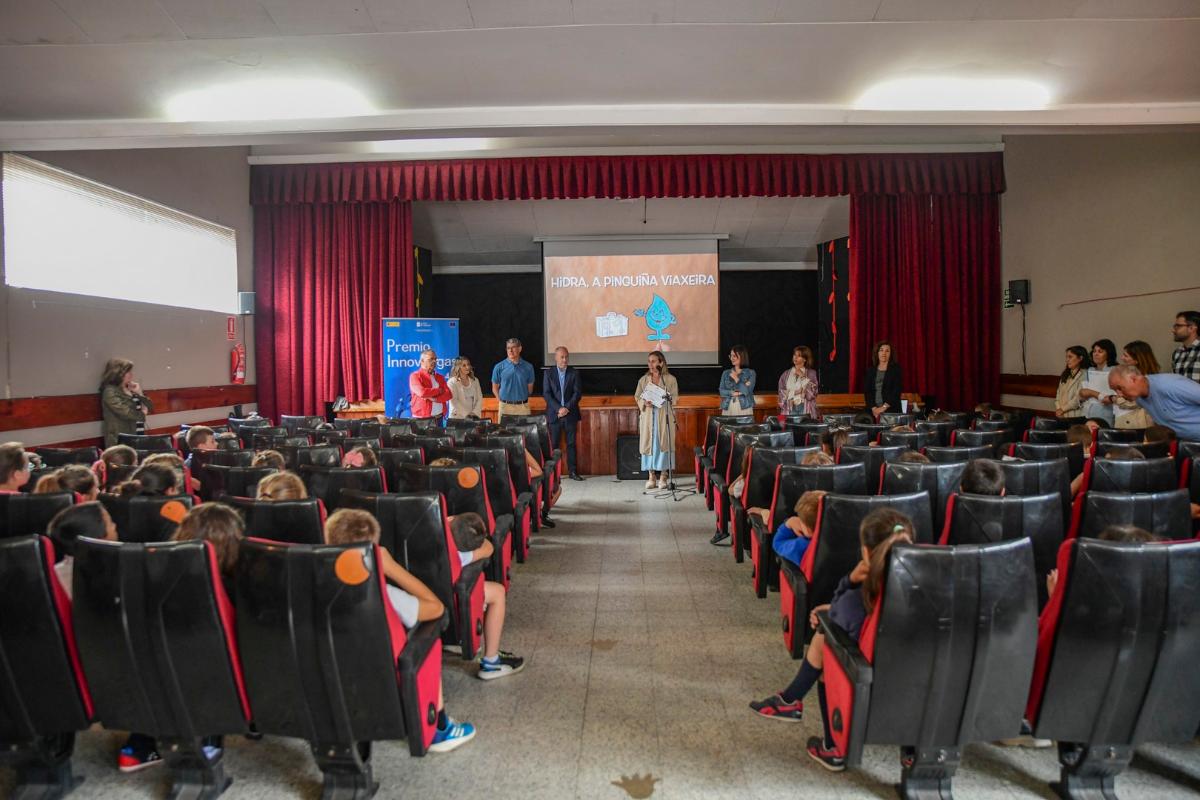 Ethel Vázquez destaca o exemplo de coidado do traballo As Pinguiñas Viaxeiras do colexio Manuela Rial Mouzo de Cee, galardoado co Premio Innovaugas 4.0