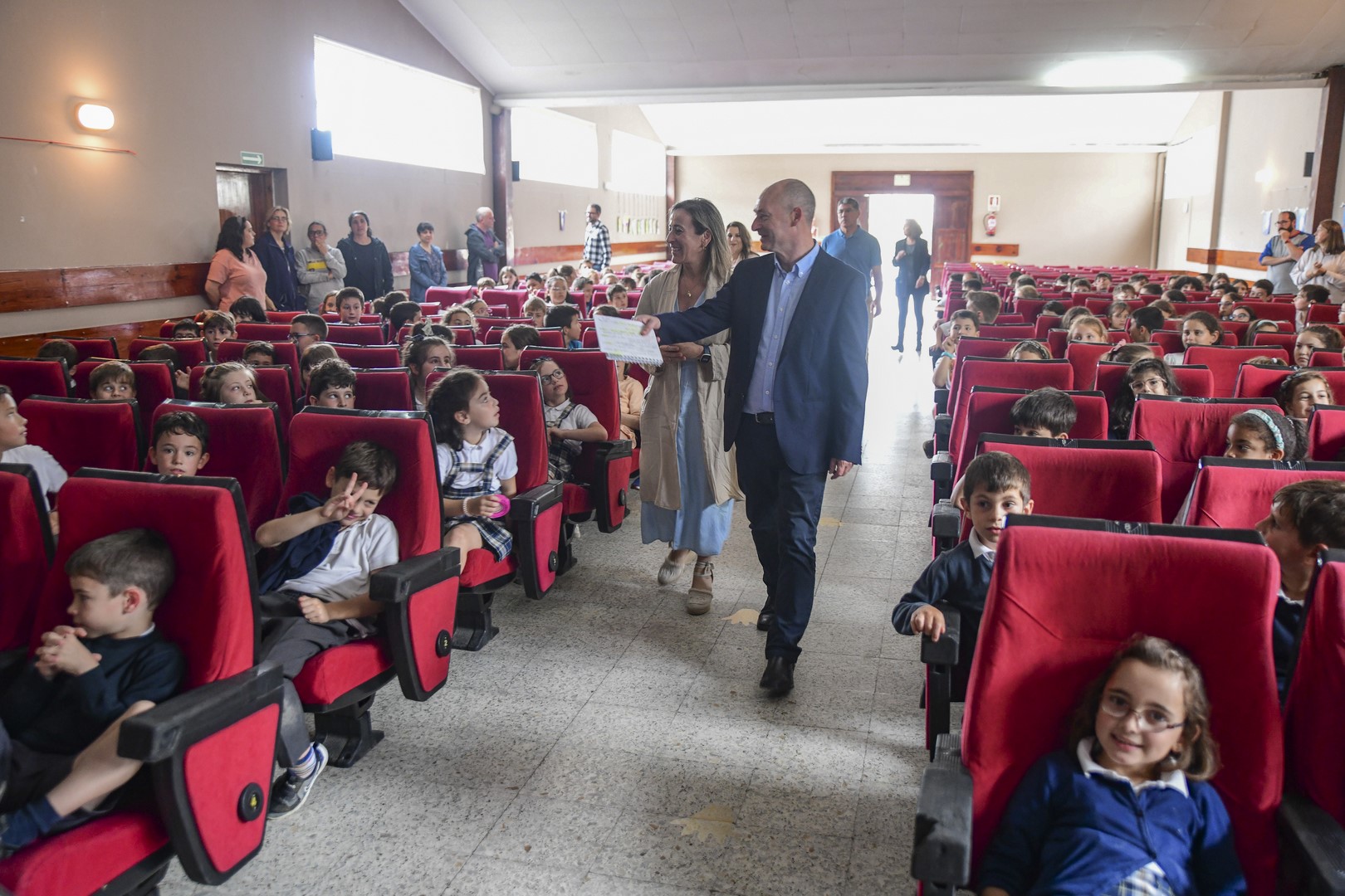 Felicitou aos alumnos de 2º de primaria do colexio polo seu esforzo na elaboración do vídeo e a escenificación, a través de Hidra, a pinga viaxeira, de todo o ciclo da auga: desde a fonte de captación ata o proceso de potabilización antes de chegar ás casas; e o proceso de depuración antes de ser devolta ao medio en condicións axeitadas.