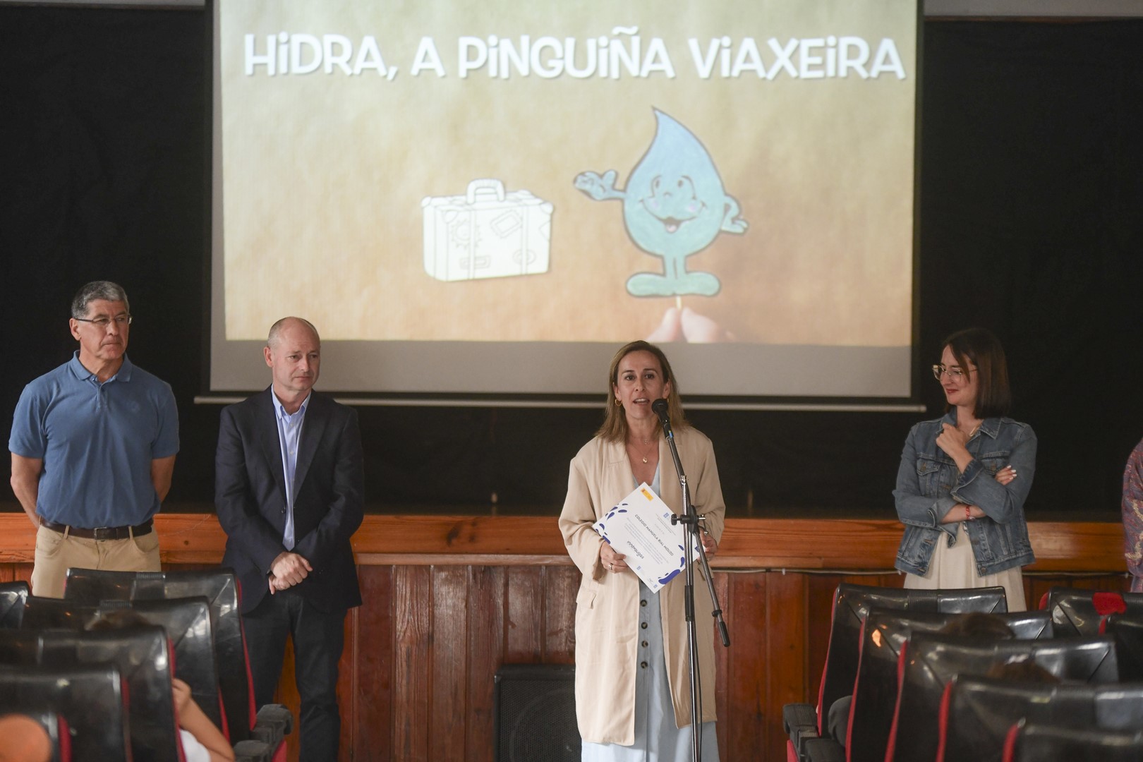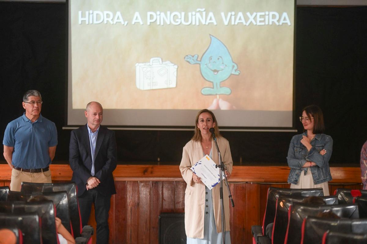 Cee (A Coruña), 13 de xuño de 2023 A conselleira de Infraestruturas e Mobilidade, Ethel Vázquez, destacou hoxe o exemplo de coidado da auga que transmite o traballo ‘As Pinguiñas viaxeiras’ do colexio Manuela Rial Mouzo de Cee, galardoado co Premio Escolar Innovaugas 4.0.