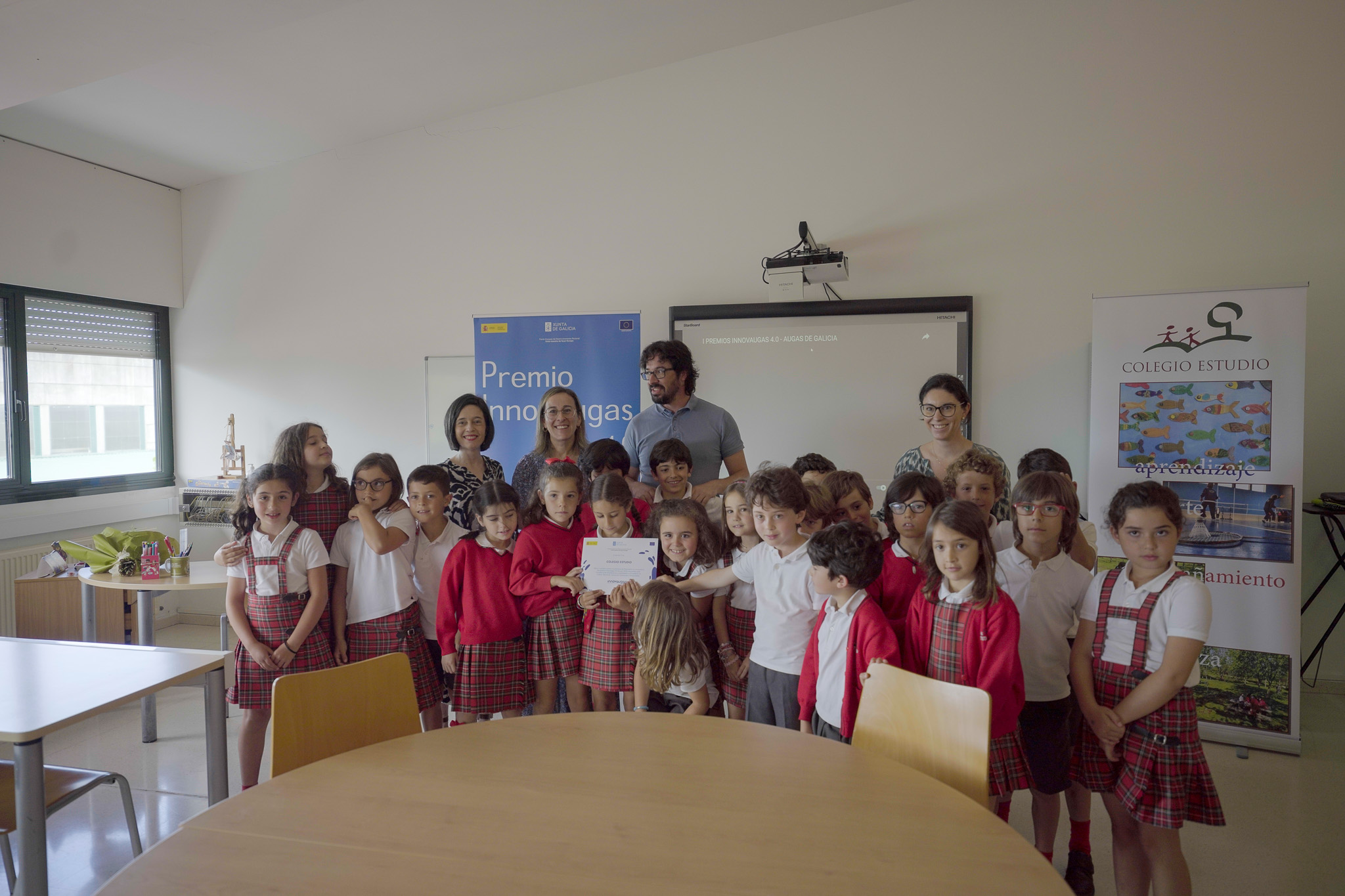 Vázquez Mourelle entregó hoy el premio, dotado con 3.000 €, al proyecto ganador en la provincia de Pontevedra, realizado por los alumnos de 2º de primaria de este centro.