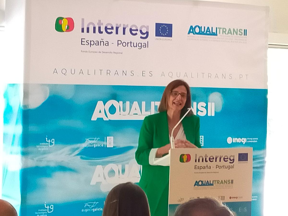 A directora de Augas de Galicia, Teresa Gutiérrez, participou hoxe na xornada de clausura sobre o proxecto europeo Aqualitrans II, sistema de xestión e control para a mellora da eficiencia, sustentabilidade e eficiencia enerxética no funcionamento das depuradoras, que tivo lugar na cidade do Porto.