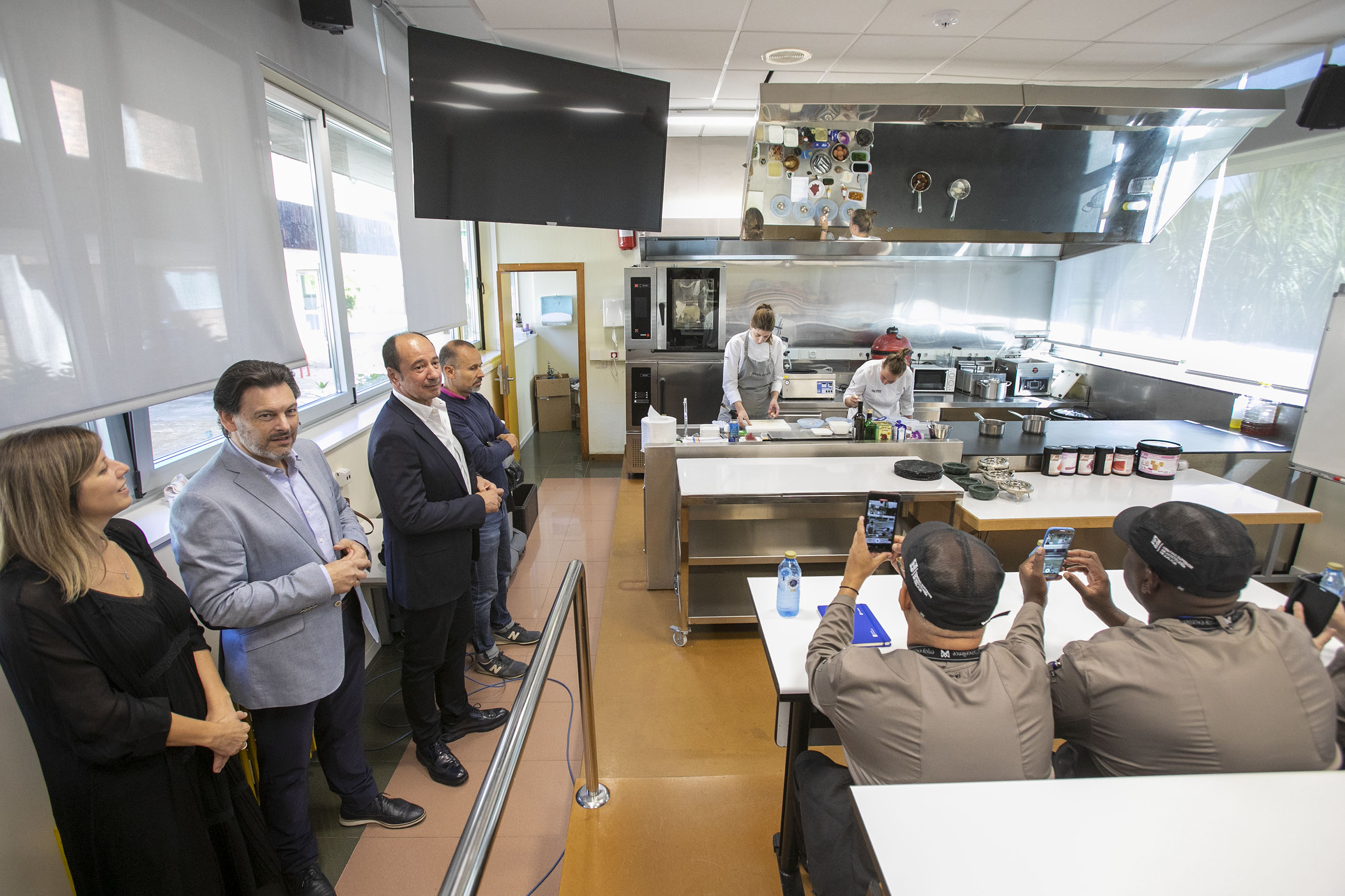 Miranda e Merelles coñecen os obradoiros de cultura galega que están a realizar os participantes do programa Escolas Abertas no Centro Superior de Hostelería de Galicia