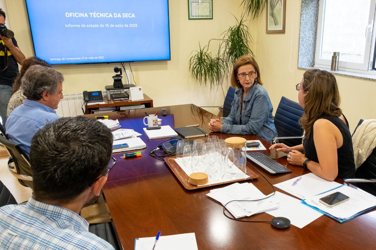A directora de Augas de Galicia, Teresa Gutiérrez, presidiu hoxe a primeira xuntanza do verán da Oficina Técnica da Seca, na que participan, xunto aos técnicos de Augas de Galicia, representantes de Protección Civil, de Meteogalicia e da Consellería do Medio Rural.
