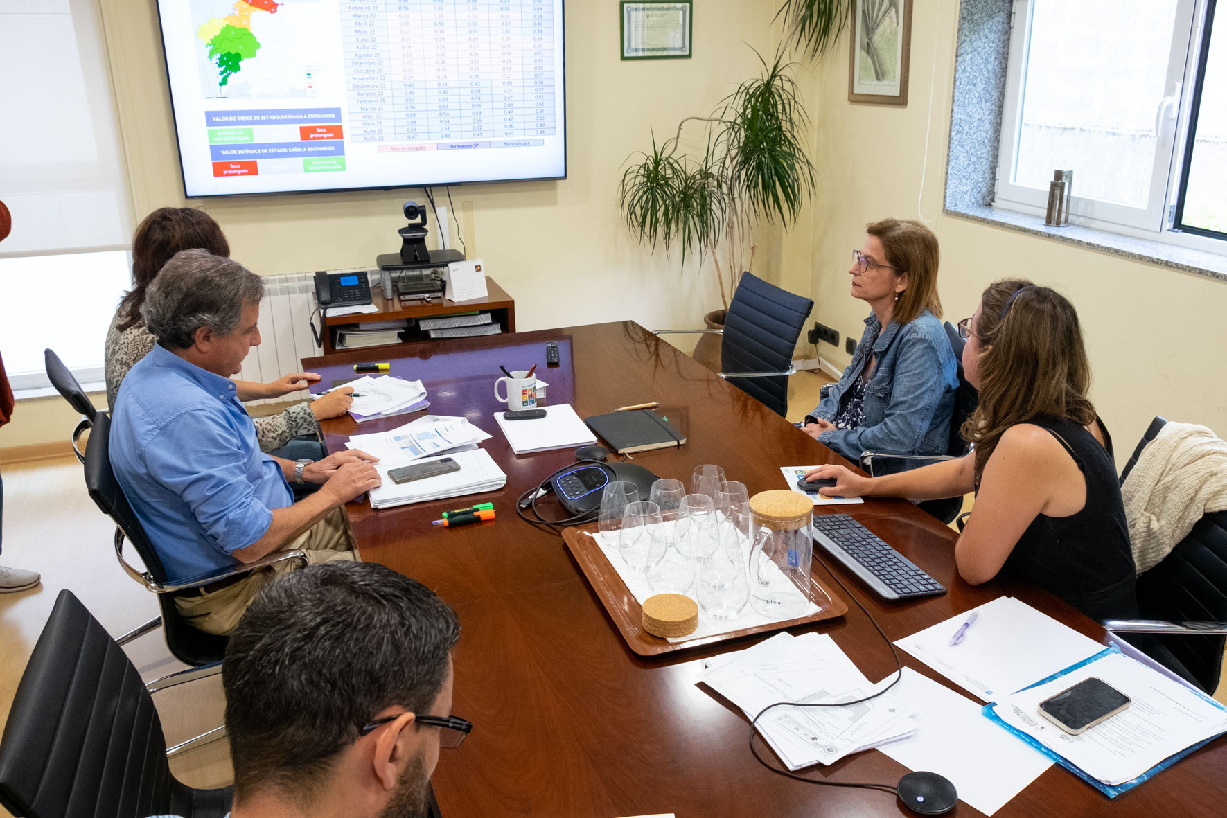 A directora de Augas de Galicia, Teresa Gutiérrez, presidiu hoxe a reunión da Oficina Técnica da Seca, na que participan Protección Civil, Meteogalicia e a Consellería do Medio Rural