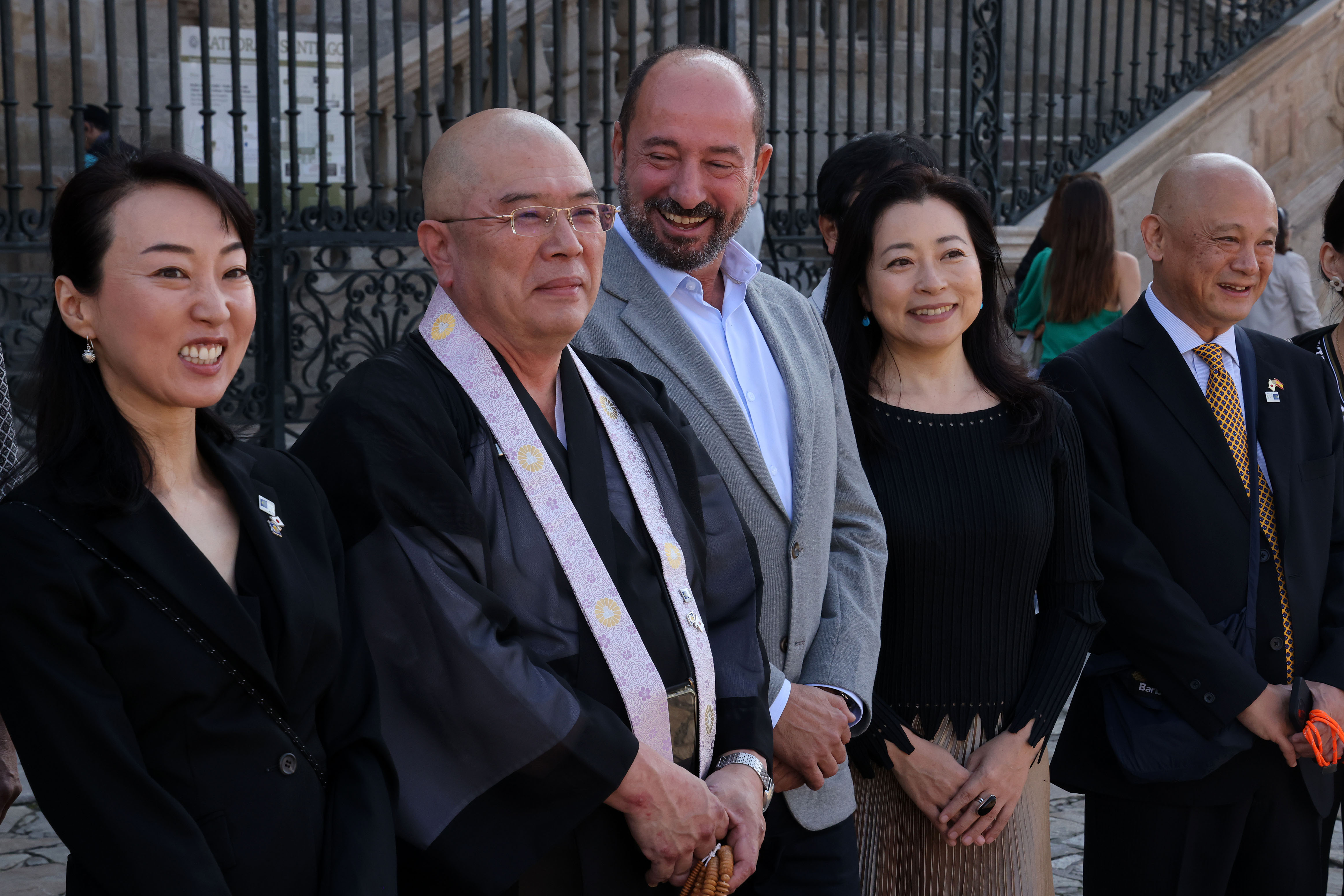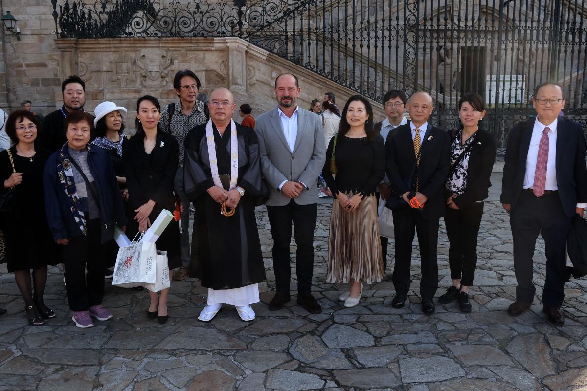 El director de Turismo de Galicia, Xosé Merelles, recibió hoy a los responsables de los templos budistas del Camino Kan-Non, Kenjoo Ooki y Hendo Okamura, en el marco de las conmemoraciones del hermanamiento con el Camino de Santiago que se están celebrando estos días en Galicia. Tras conocer distintos tramos de la ruta xacobea durante esta semana y hacer algunos tramos a pie, la delegación japonesa llegó a Santiago de Compostela donde esta tarde continuarán las celebraciones con actividades para el público.