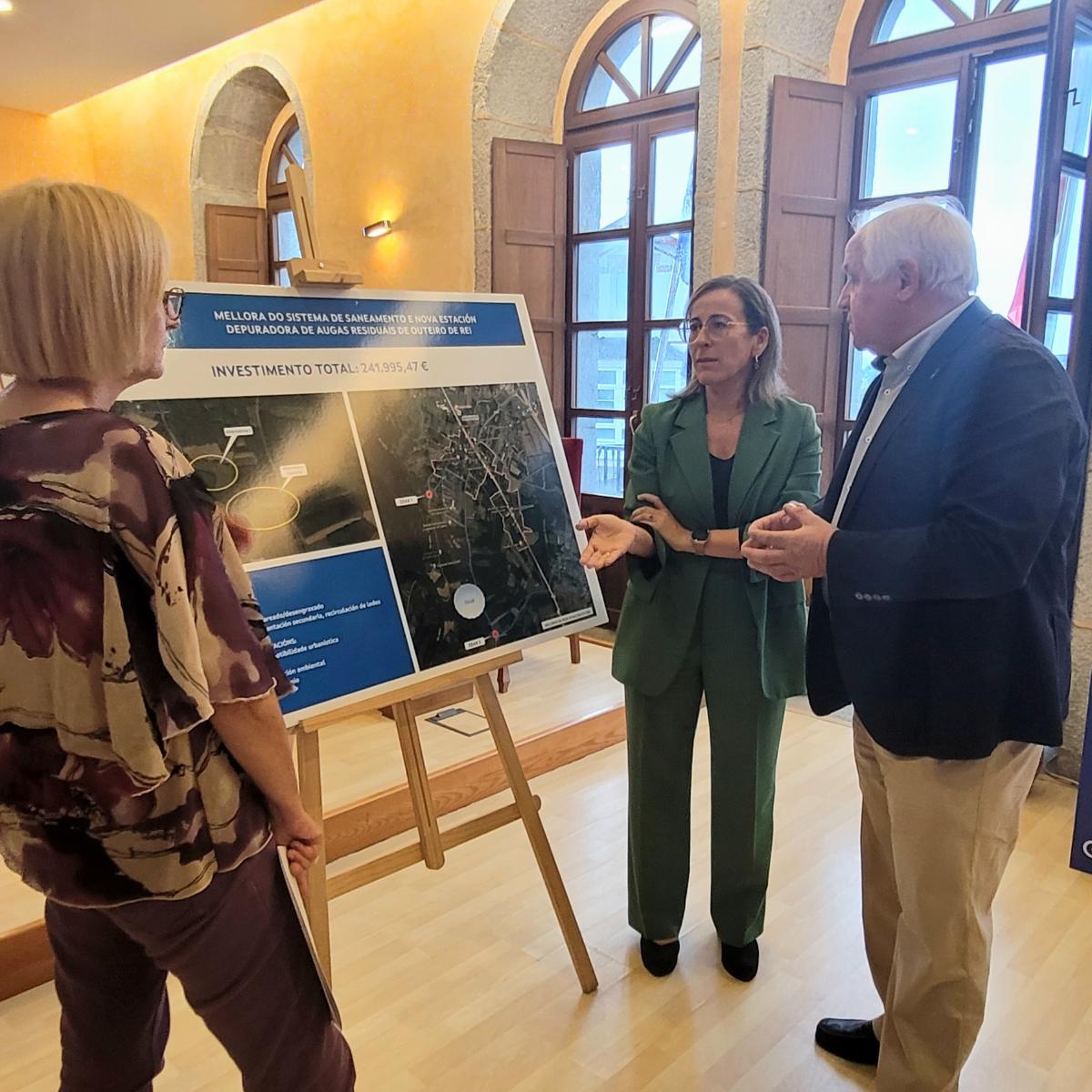 Así o adiantou Vázquez Mourelle na presentación, xunto coa estiveron a directora de Augas de Galicia, Teresa Gutiérrez, e o alcalde de Outeiro de Rei, José Pardo, deste contrato da Xunta para a mellora dos servizos municipais da auga, neste caso para a mellora do saneamento no municipio.