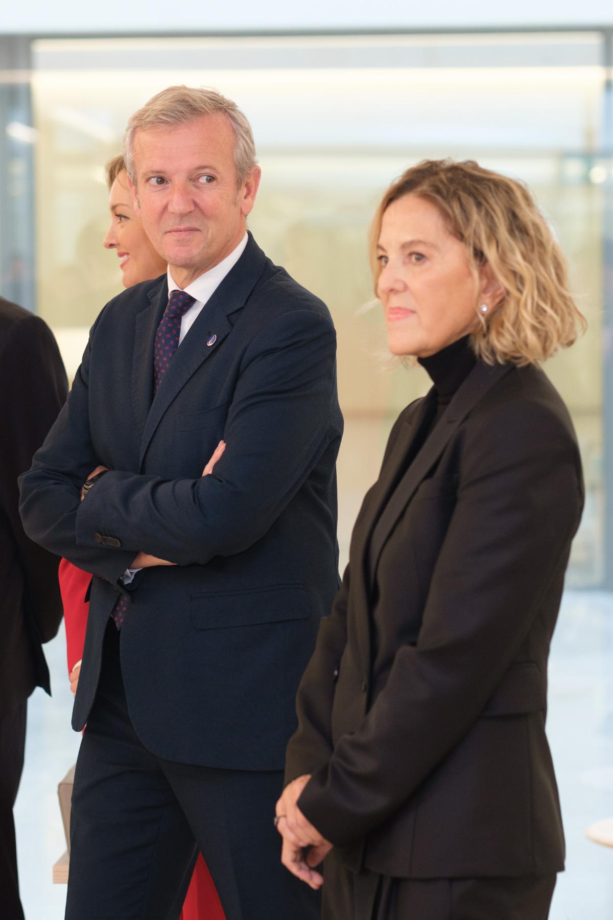 El presidente de la Xunta y la presidenta de la Fundación Amancio Ortega (FAO), Flora Pérez Marcote, acompañados por la conselleira de Política Social e Xuventude, Fabiola García, asistieron en Santiago de Compostela a la entrega del primero de los siete centros de mayores construidos y financiados íntegramente por la FAO