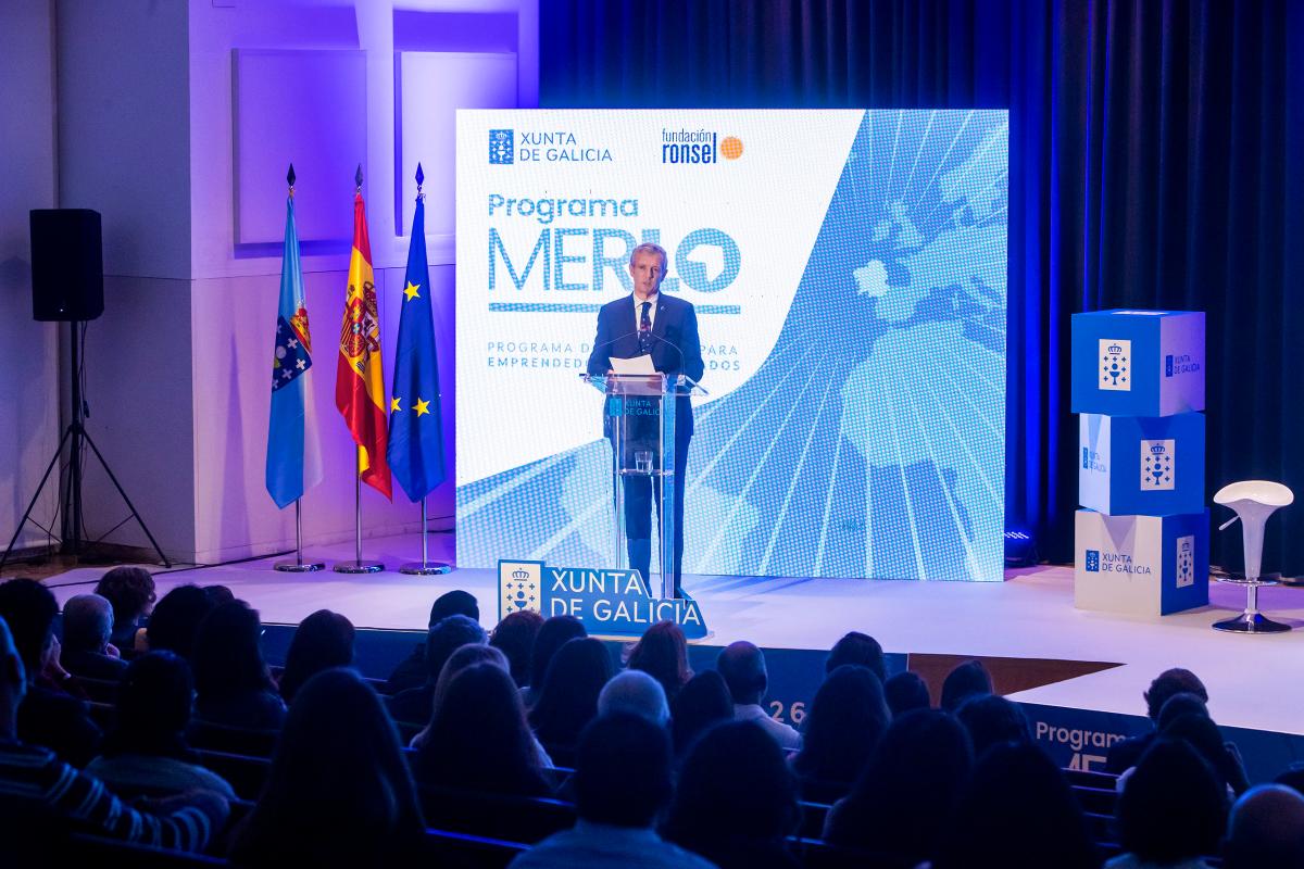 El presidente de la Xunta, Alfonso Rueda, asistió hoy en Santiago al encuentro Retorno Emprendedor de la Rede Programa Merlo para poner en valor el emprendimiento de los gallegos y gallegas retornados a nuestra tierra.