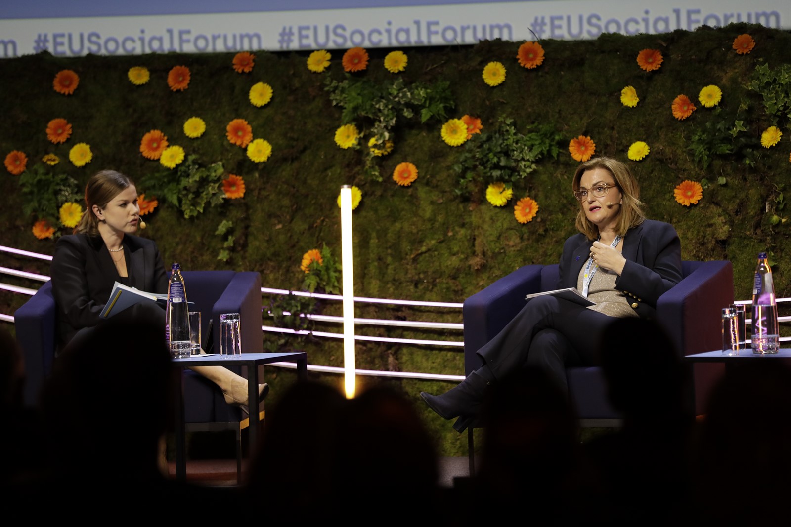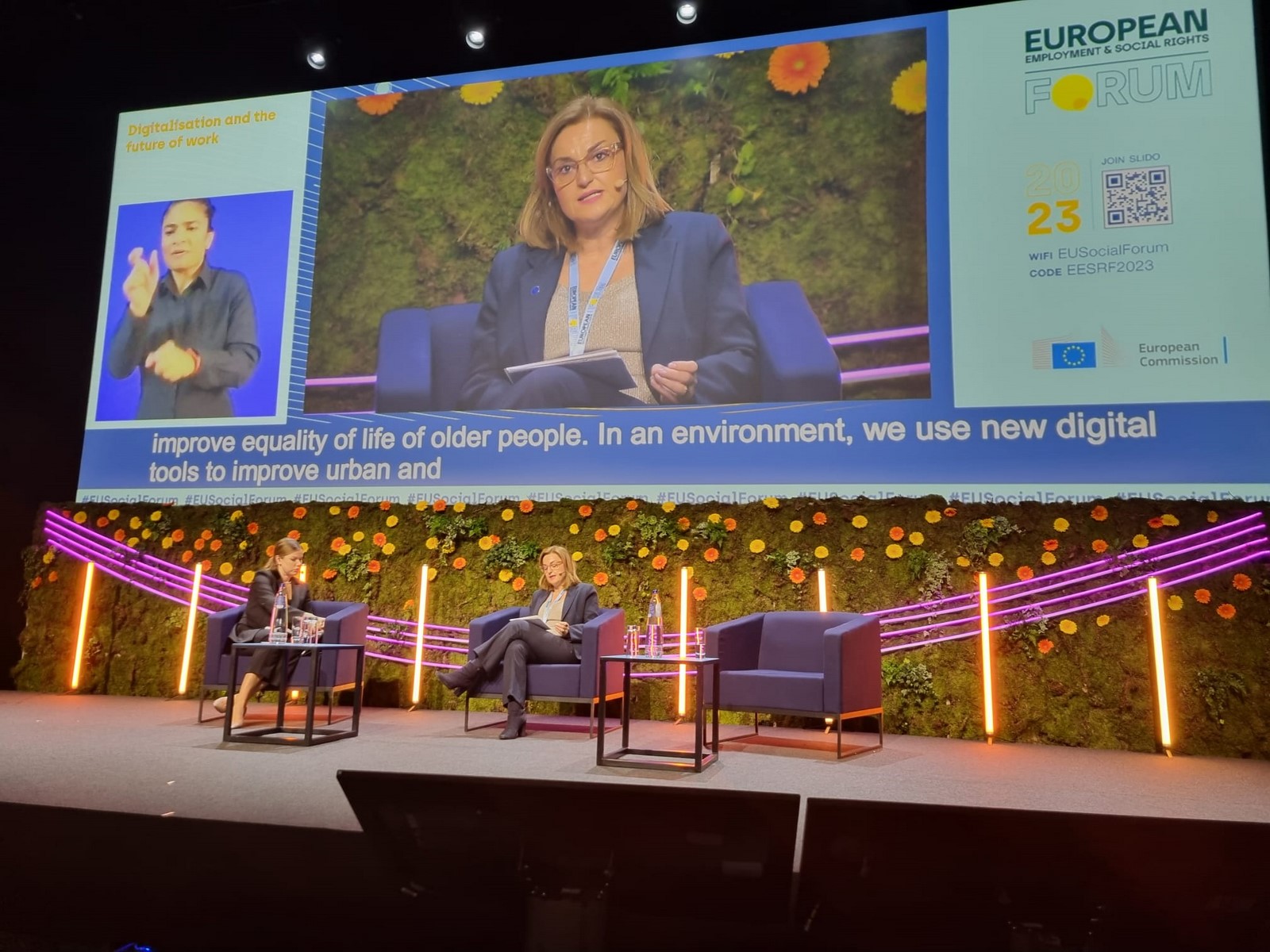 La conselleira de Promoción do Emprego e Igualdade, Elena Rivo, finalizó hoy su viaje a Bruselas con su intervención en la mesa sobre digitalización y el futuro del trabajo en el marco del European Employment & Social Rights Forum 2023