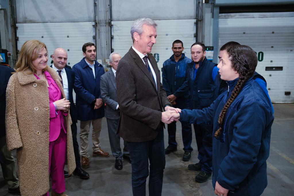 El presidente de la Xunta mantuvo un encuentro en Oroso con diez trabajadores que se acogieron a la iniciativa para conseguir un puesto en el grupo Vegalsa-Eroski