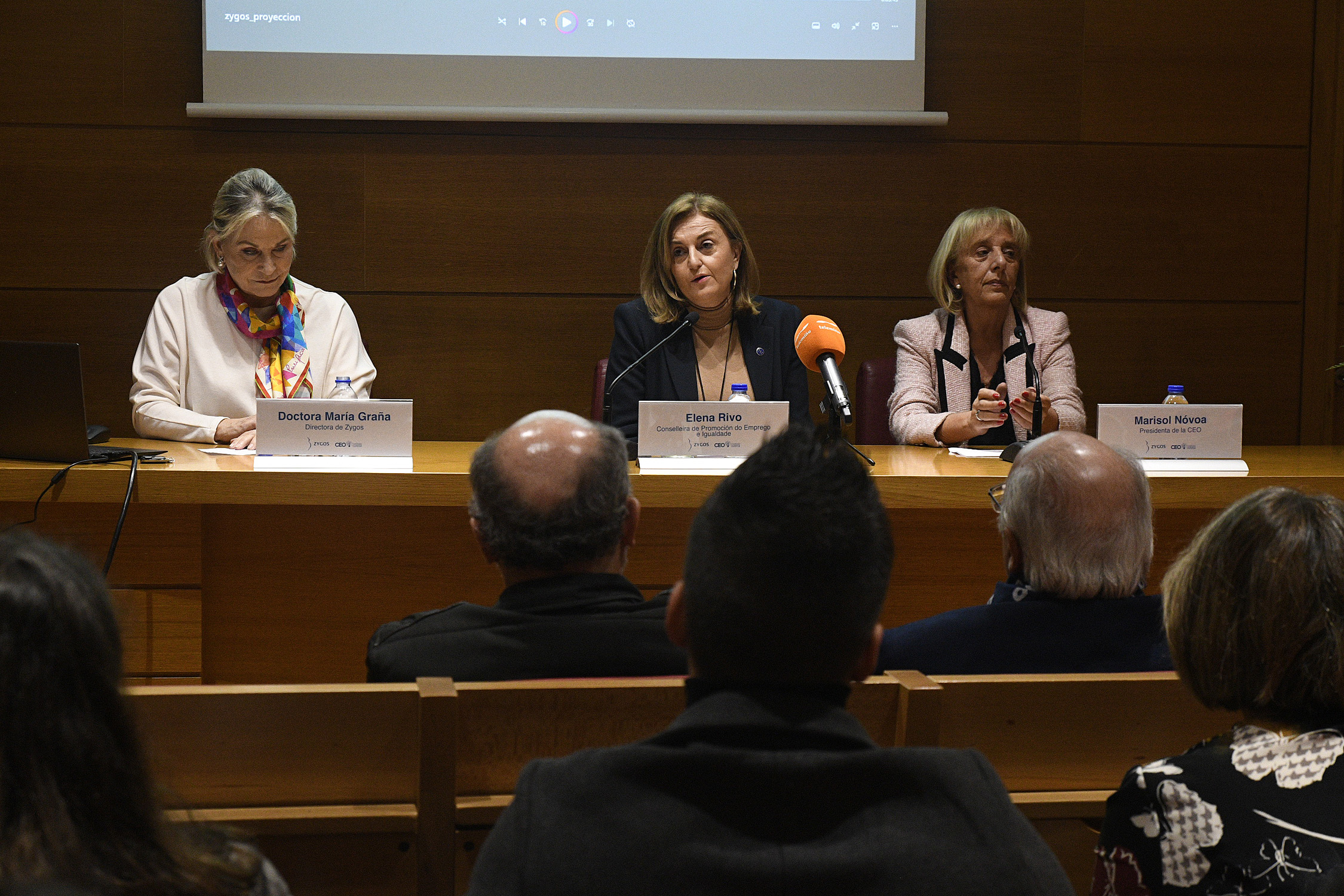 La conselleira de Promoción do Emprego e Igualdade, Elena Rivo, presentó hoy una conferencia coloquio a cargo de María Graña, directora de las clínicas de reproducción asistida Zygos, donde puso de relieve la apuesta de la Xunta por el emprendimiento femenino, así como por la conciliación y la corresponsabilidad.