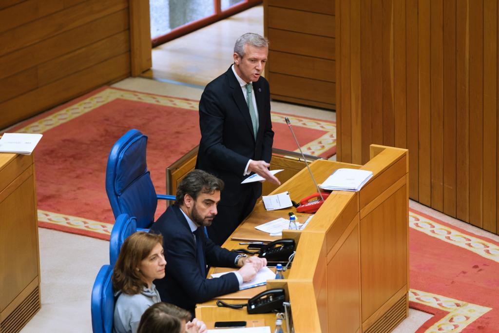 O presidente da Xunta, Alfonso Rueda, respondeu hoxe no Pleno as preguntas dos grupos parlamentarios na sesión de control ao Goberno no Parlamento de Galicia.