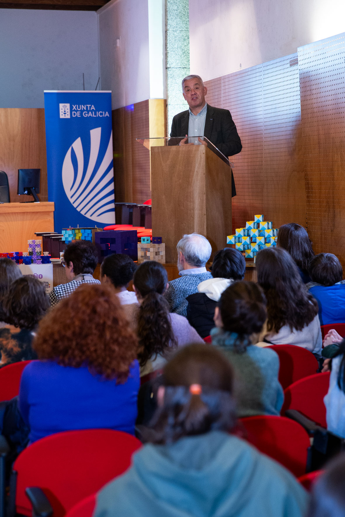 O secretario xeral de Política Lingüística, Valentín García, participou hoxe no acto de entrega da terceira edición do certame Novos Poliedros, convocado co gallo do Mes da Ciencia en galego por Igaciencia -Institución Galega da Ciencia- coa colaboración da Xunta de Galicia para promover entre a mocidade a innovación científica en lingua galega.
