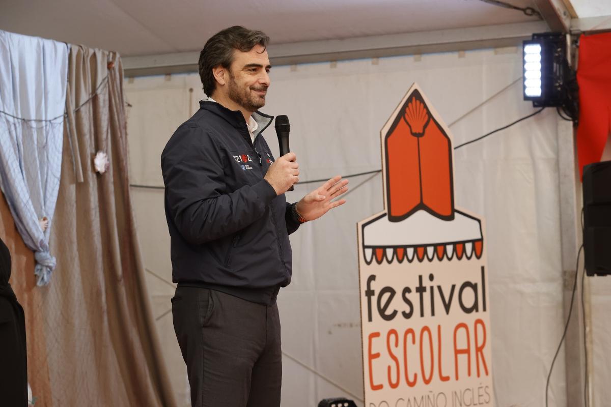 O vicepresidente primeiro e conselleiro de Presidencia, Xustiza e Deportes, Diego Calvo, participou na cuarta edición do ‘Festival Escolar do Camiño Inglés’, organizado pola Fanpa Ferrolterra Concepción Arenal para promover esta ruta entre os milleiros de escolares das comarcas de Ferrolterra, Eume e Ortegal
