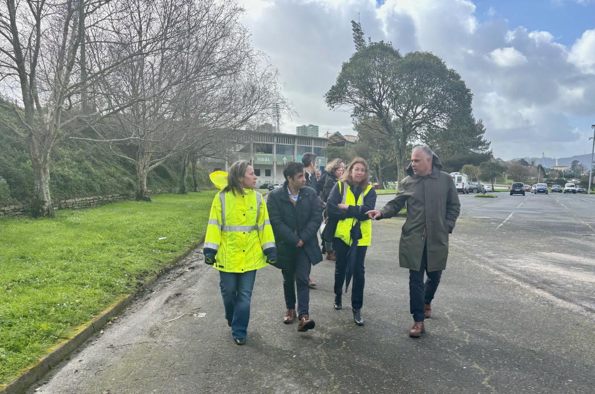 La titular de Infraestructuras y Movilidad en funciones, con el alcalde de Ferrol, José Manuel Rey, y con la secretaria de la delegación territorial de la Xunta, Patricia Busto, supervisó esta mañana las obras de ejecución de los colectores de la margen izquierda del río Sardiña, una actuación complementaria a las obras de saneamiento de la Malata, culminada en 2021 con un presupuesto autonómico de 7,3 M€.