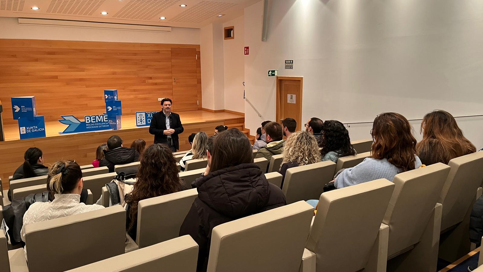 Miranda anuncia la publicación mañana de la nueva convocatoria de las becas BEME Máster durante el encuentro con los becarios del presente curso del campus de Santiago
