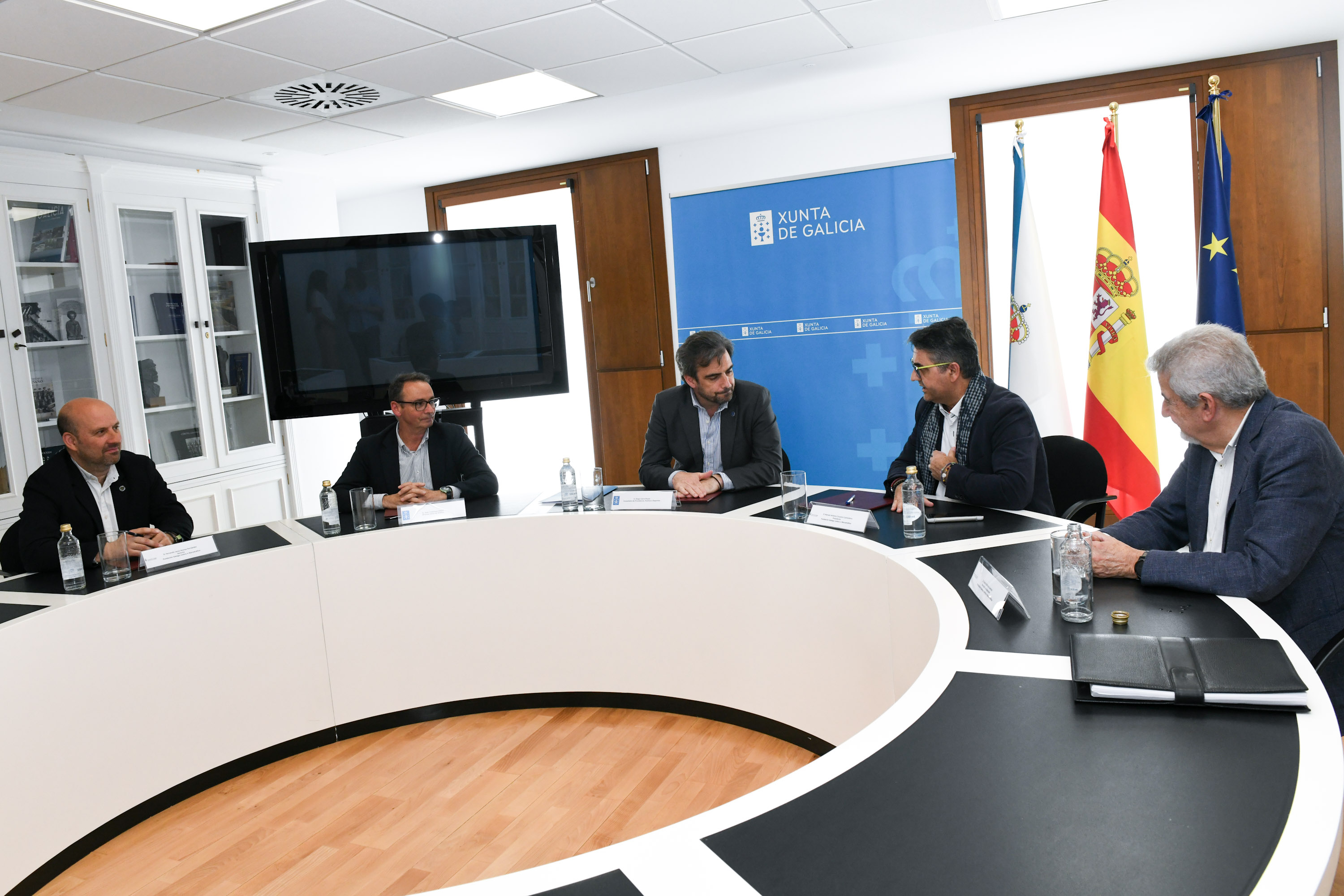 El conselleiro de Presidencia, Xustiza e Deportes, Diego Calvo, y el presidente de la Fundación, Manuel Antonio Couceiro, firmaron hoy un nuevo convenio de colaboración