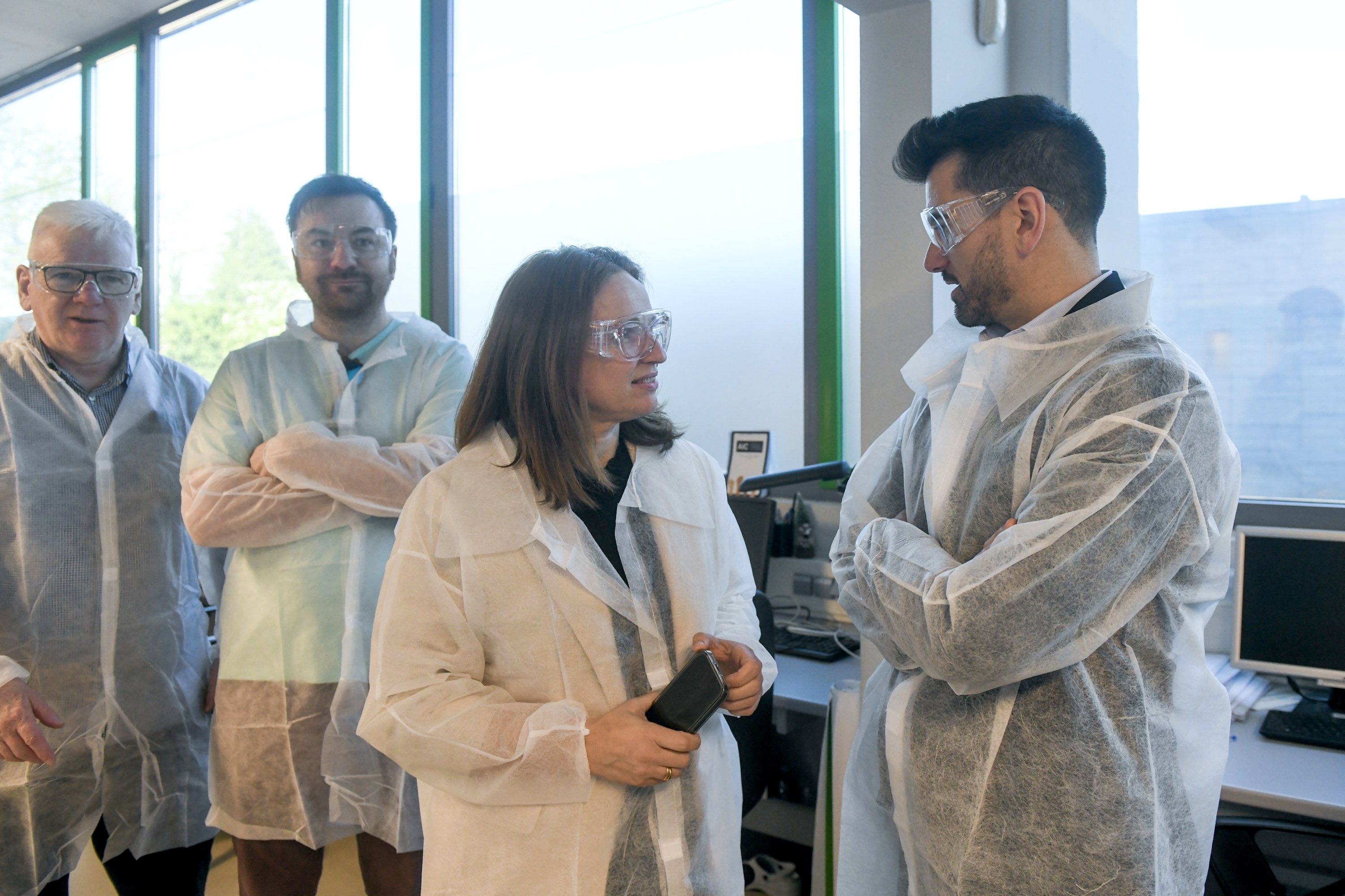 A directora da Axencia Galega de Innovación saúda aos representantes de seis países que visitan o Centro Singular de Investigación en Medicina Molecular e Enfermidades Crónicas da USC