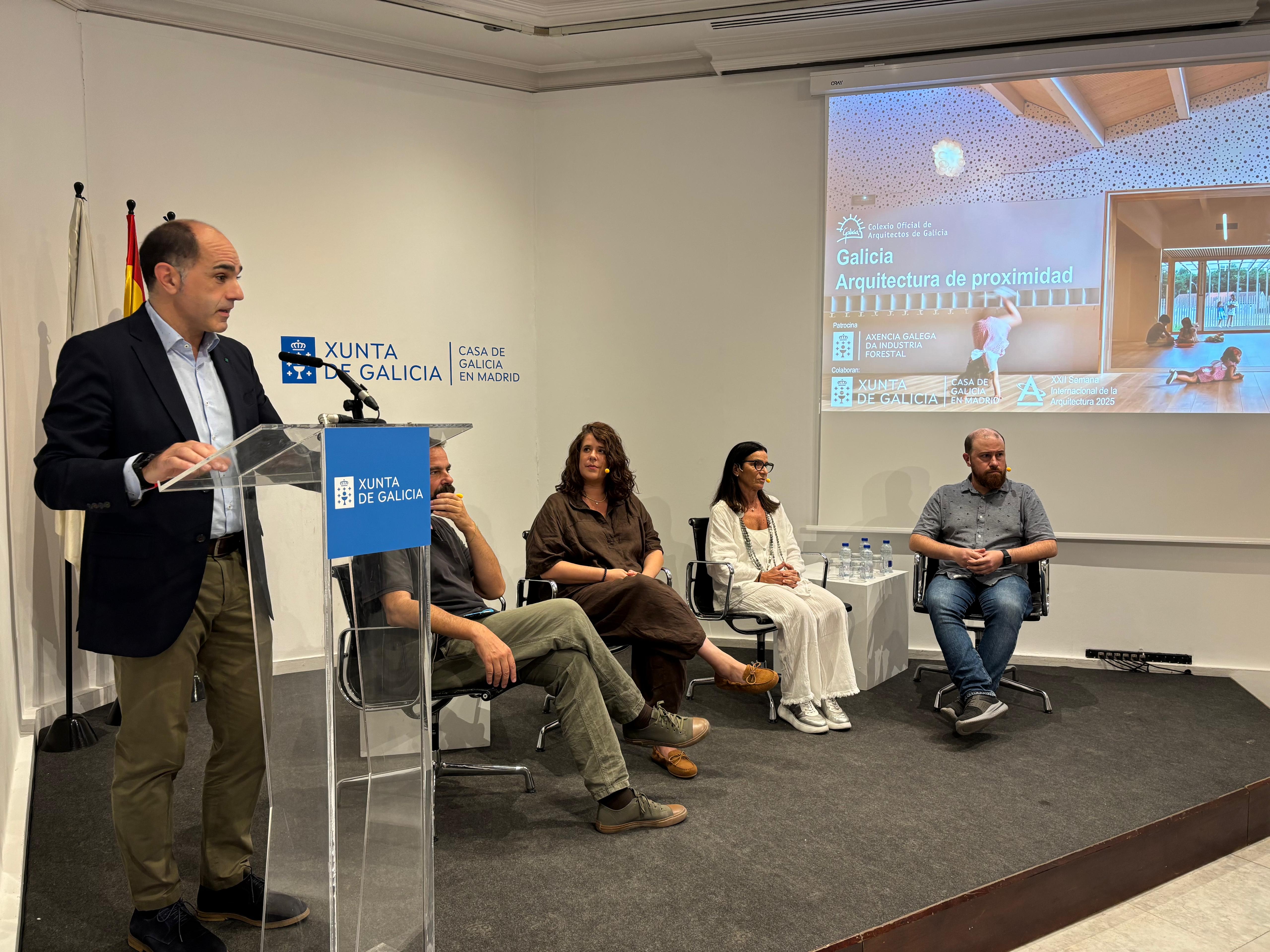 O director da Axencia Galega da Industria Forestal (Xera), Alfredo Fernández Ríos, participou en Madrid na inauguración da xornada Galicia. Arquitectura de proximidade, que tivo lugar na Casa de Galicia