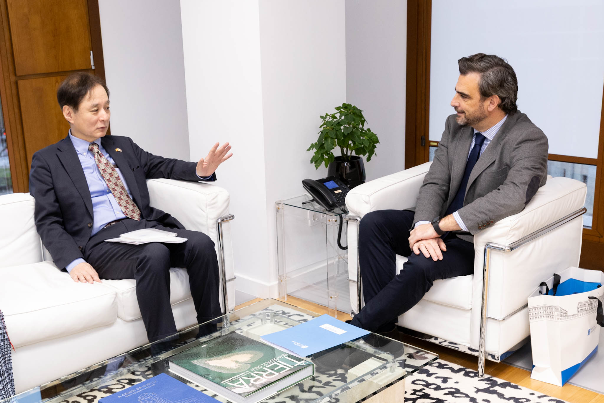 O secretario xeral da Emigración, Antonio Rodríguez Miranda mantivo un encontro con alumnos beneficiarios das BEME que cursan os seus másteres no Campus de Ourense no que tamén estivo o delegado territorial da Xunta na provincia, Manuel Pardo