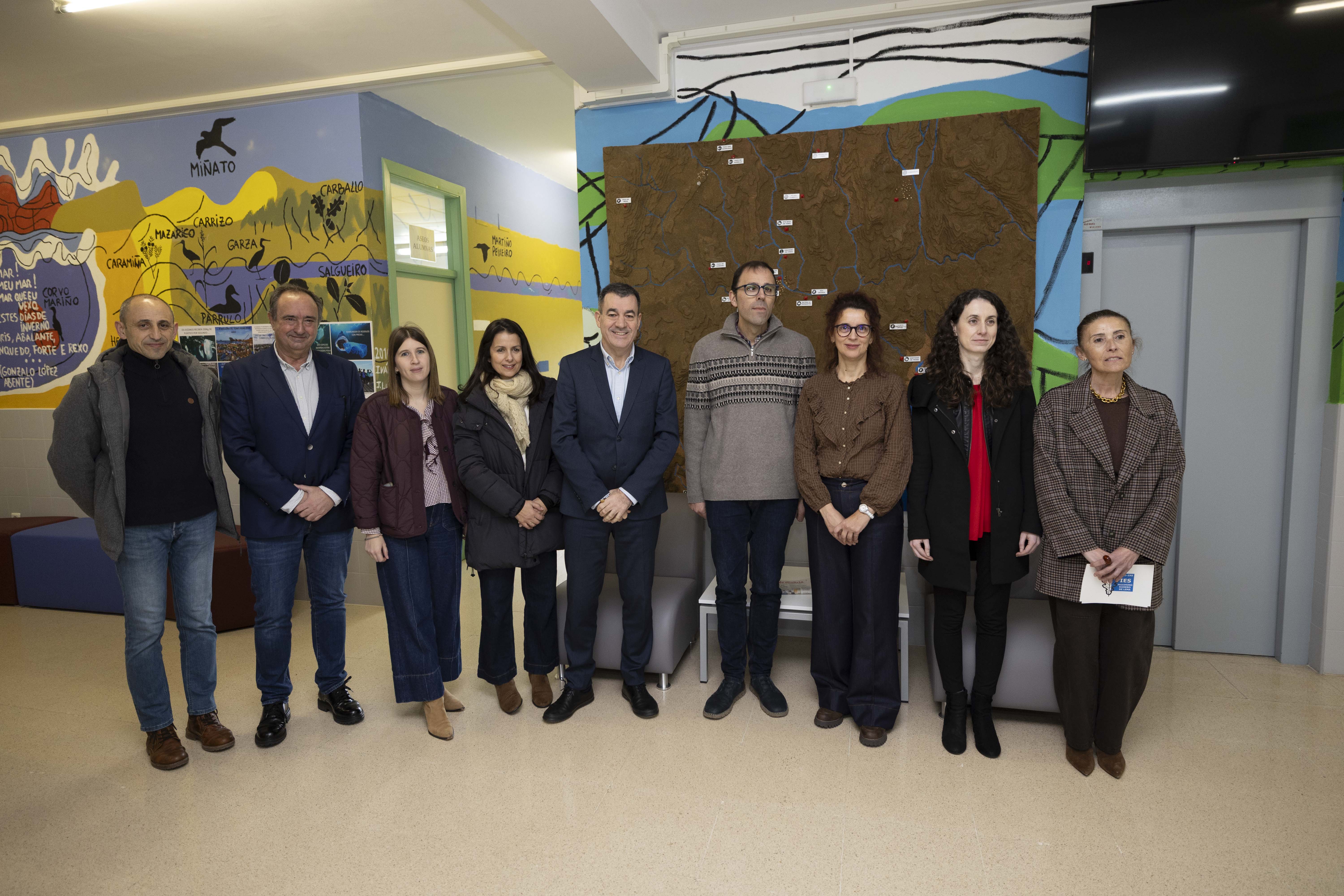 O conselleiro Román Rodríguez trasládalles persoalmente os parabéns a Lorena Cerdeira, Fina Paulos e Óscar Rey, docentes que desenvolven o seu labor en Zas