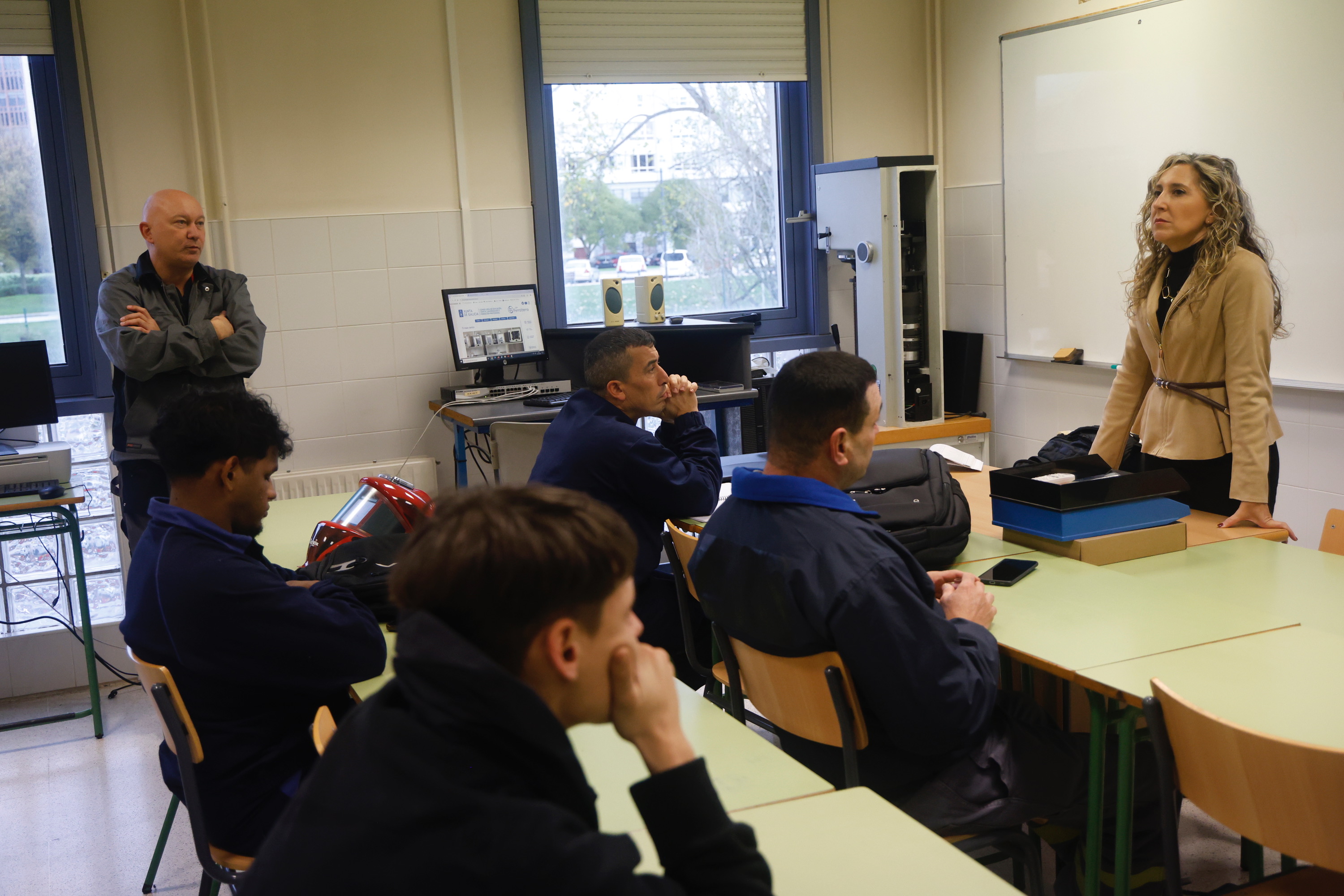 La delegada territorial de la Xunta en Ferrol estuvo esta tarde con los alumnos que cursan el primer turno de los certificados de Fabricación y Montaje de instalaciones de tuberías y construcción y carpintería metálica en esta modalidad pionera en Galicia