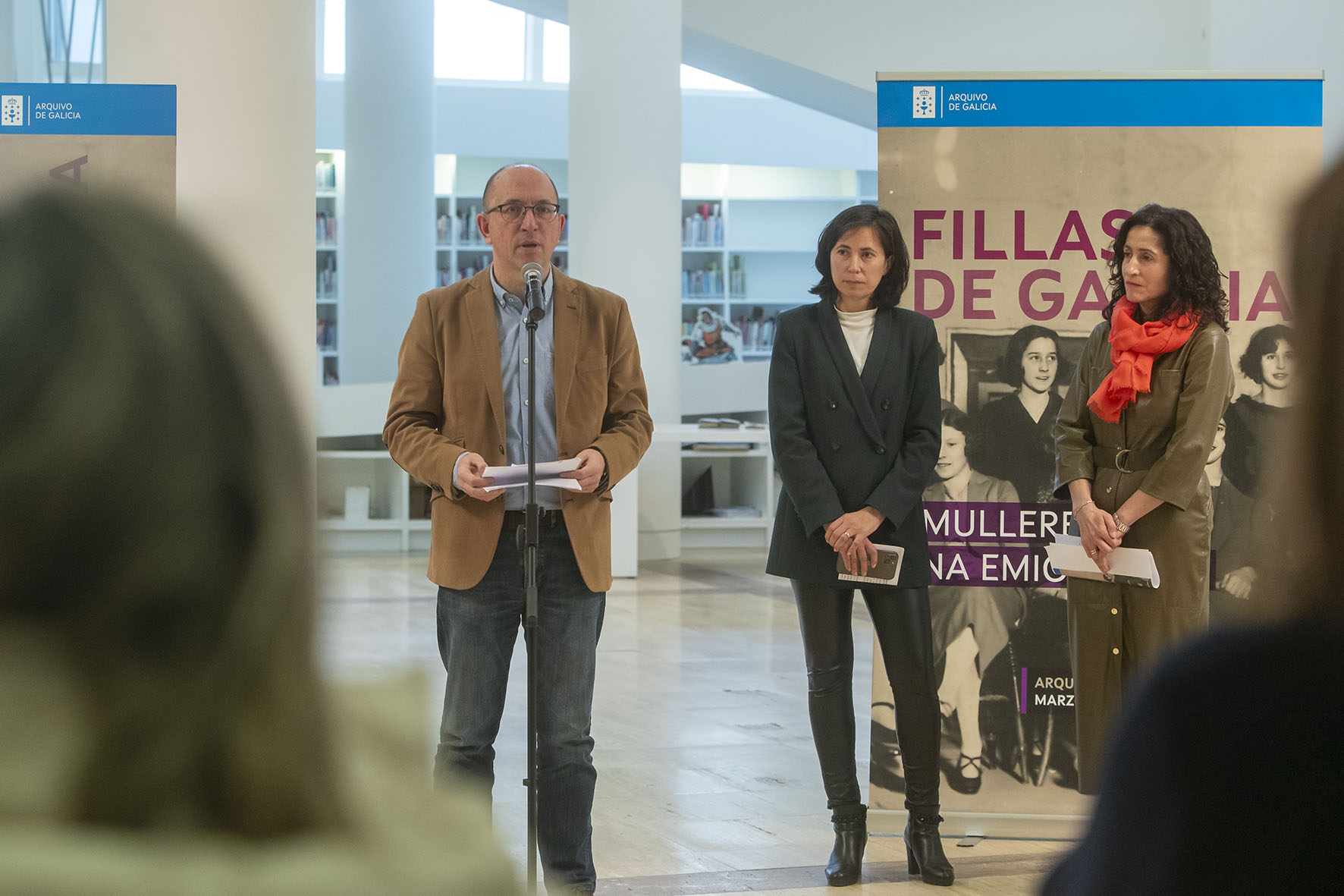 El director xeral de Cultura inaugura la exposición 'Hijas de Galicia. Mujeres en la emigración', que analiza los roles de género a partir de los fondos de la Casa de Galicia de Montevideo y la Asociación El Penedo de Barcelona