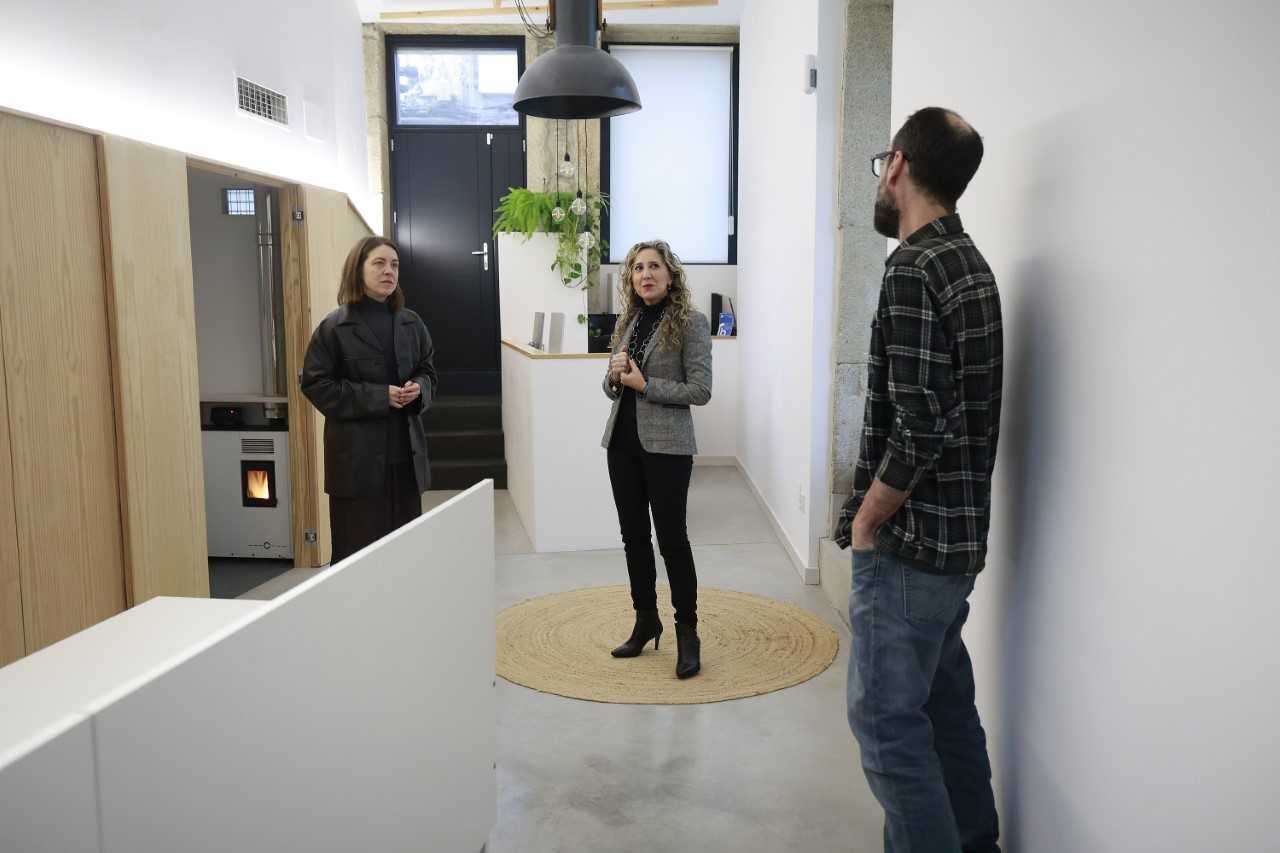 A delegada territorial de Ferrol, Martina Aneiros visitou esta mañá o estudio de arquitectura VLD Arquitectos, en Ferrol, un dos negocios beneficiarios destas achegas autonómicas