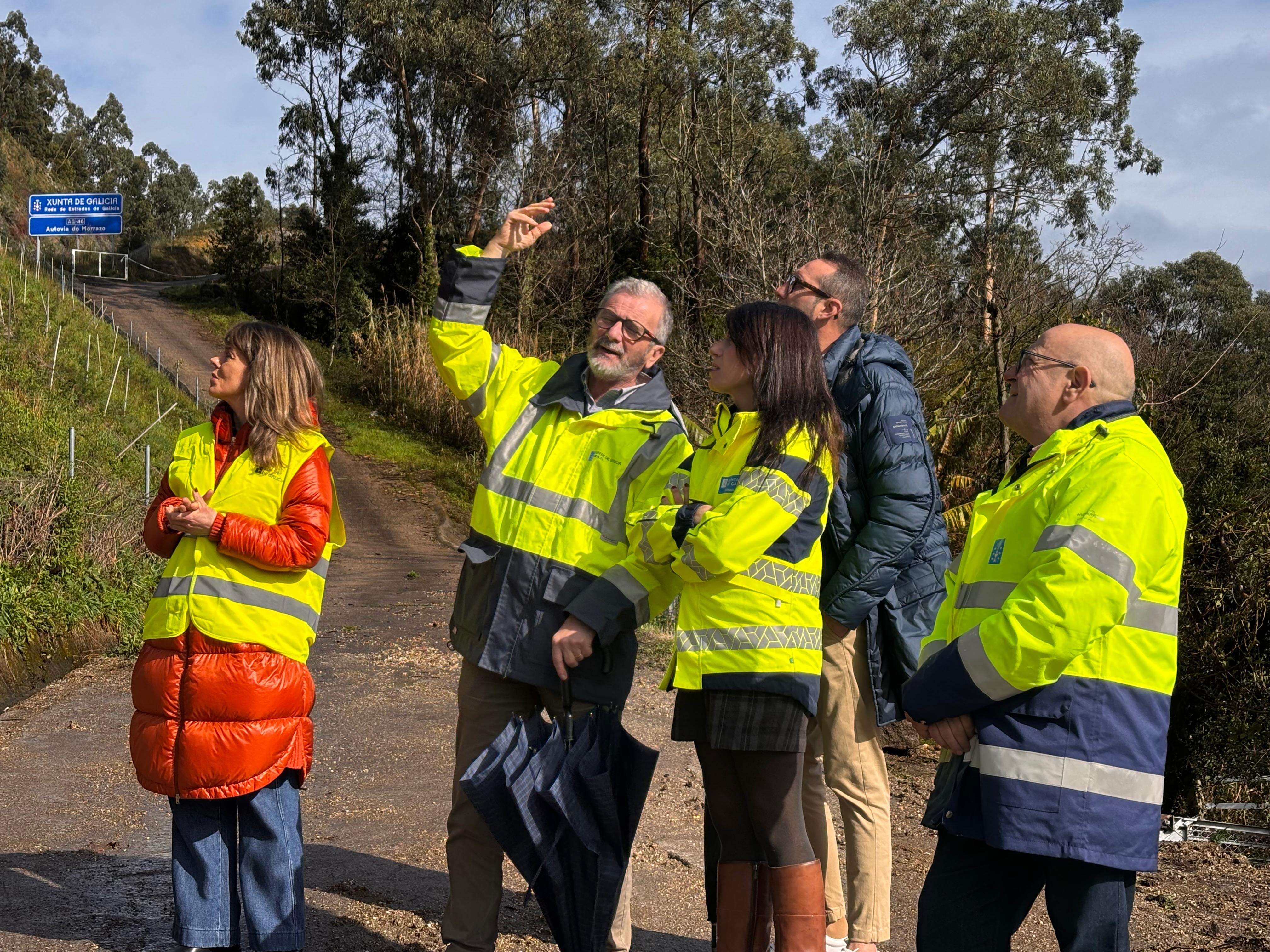 A conselleira Allegue supervisa as tarefas que a Xunta está a executar tras o deslizamento de terras en Xalde, na autovía do Morrazo