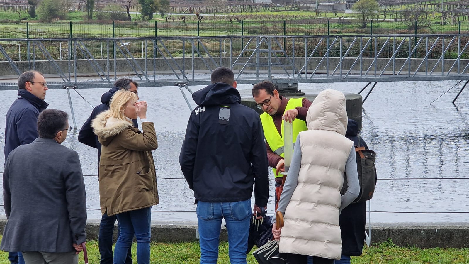 A Xunta realiza unha visita guiada á depuradora de Meaño con profesionais do sector industrial do municipio para afondar no funcionamento da rede de saneamento