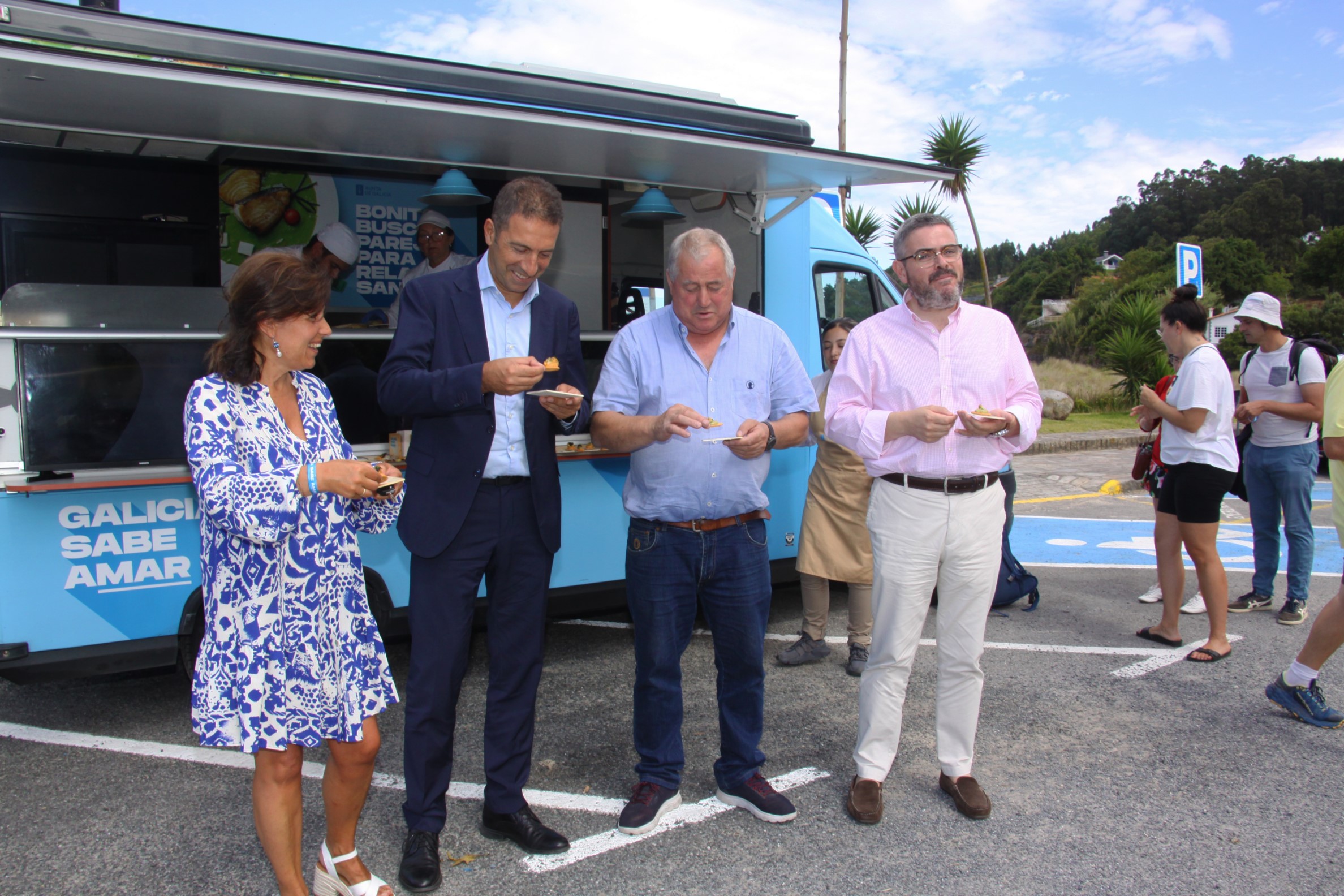 Agustín Reguera destaca a calidade dos peixes e mariscos galegos na visita á foodtruck de 'GALICIA SABE AMAR' en Vilagarcía