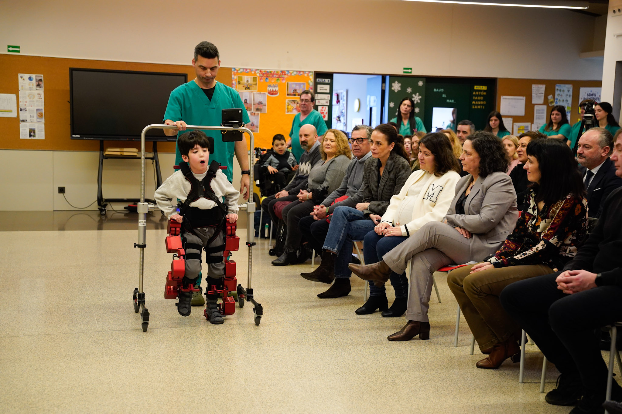 A delegada da Xunta puxo en valor o compromiso de ASPACE coa innovación aplicada á rehabilitación e destacou que este exoesqueleto permitirá que nenos e nenas que non podían camiñar poidan facelo, grazas a un dispositivo robótico que se adapta ao corpo infantil e imita o funcionamento natural do músculo