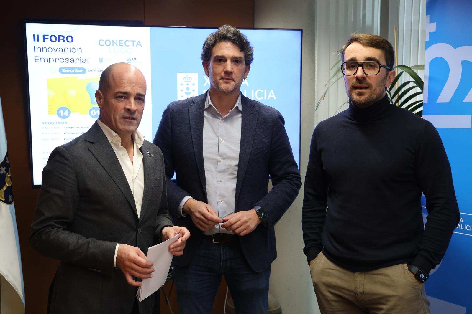 El delegado territorial, Javier Arias, y el secretario general de la CEL, Jaime López, presentaron la jornada, enmarcada en el programa Conecta Lugo, que tiene por objeto facilitar apoyo y asesoramiento al tejido empresarial lucense