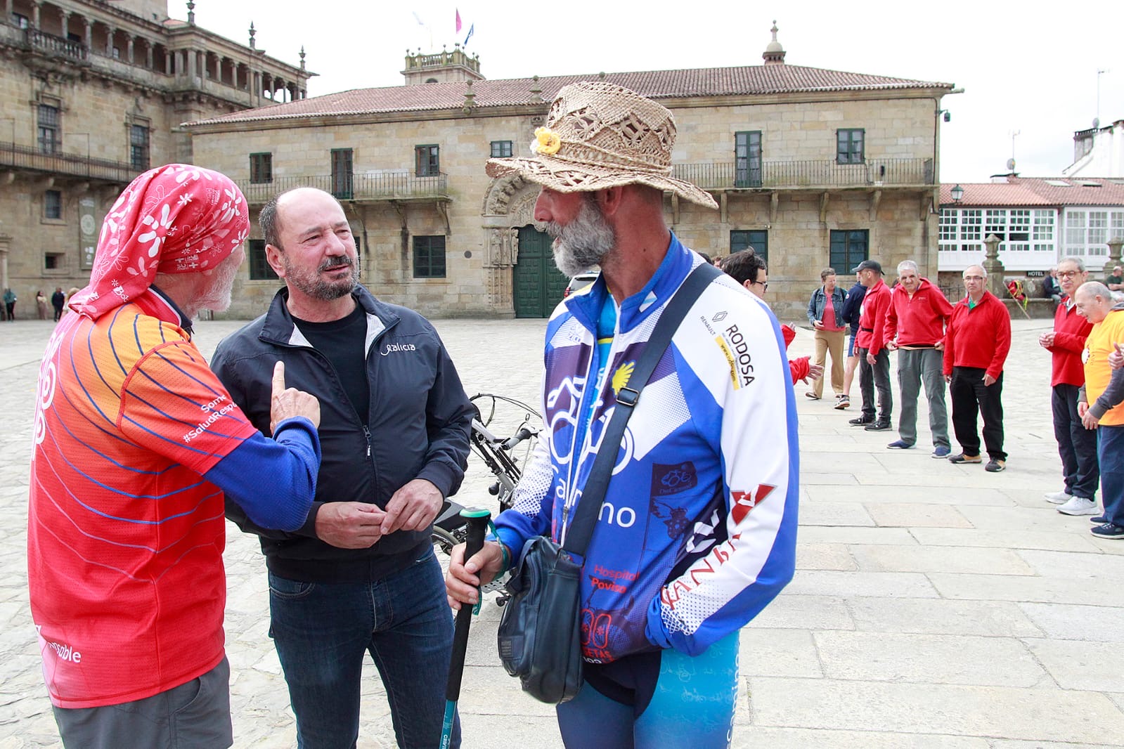 Xosé Merelles recibiu esta mañá na Praza do Obradoiro a un grupo de peregrinos da asociación DisCamino que fixo o Camiño co apoio dun vehículo adaptado financiado por Turismo de Galicia